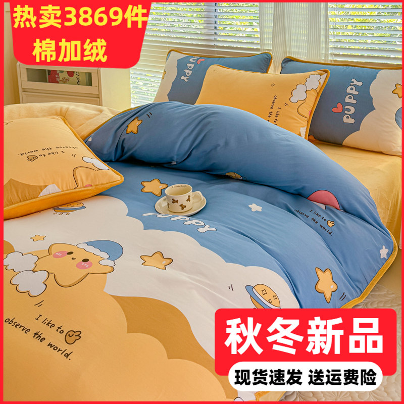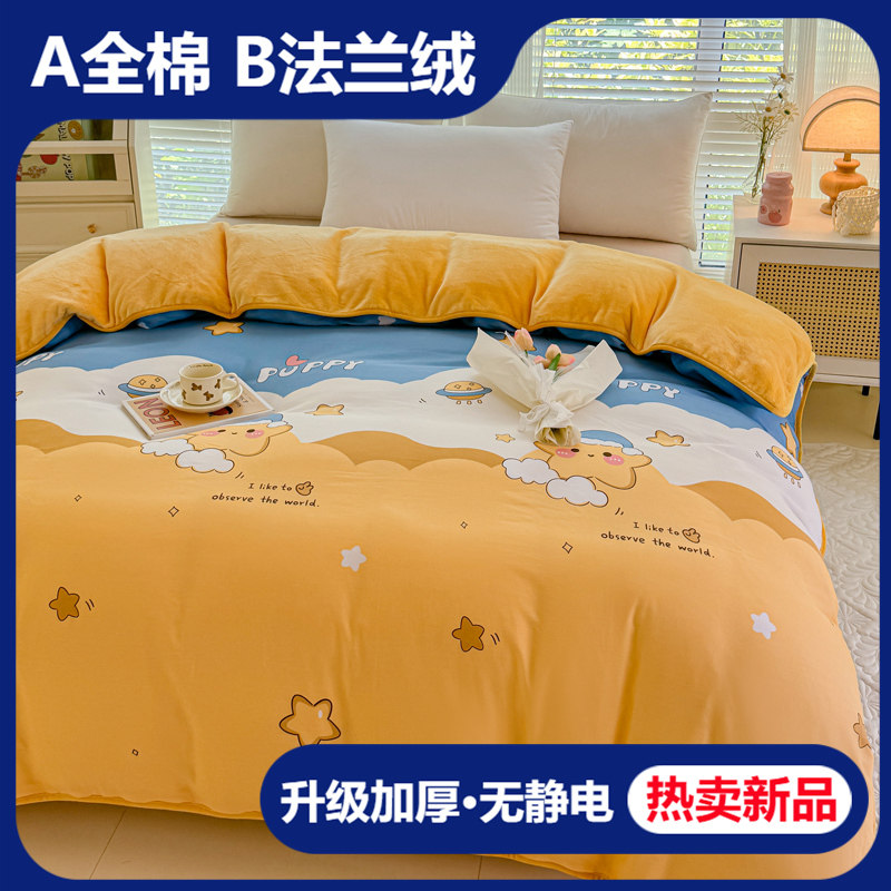 ab面一面全棉一面绒被套单面珊瑚绒纯棉加绒被罩冬季牛奶绒四件套