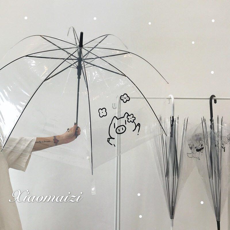 夏季日系卡通ins风涂鸦史努比透明雨伞男女长柄半自动