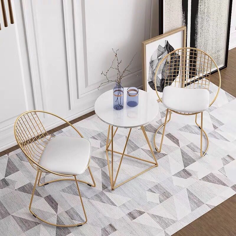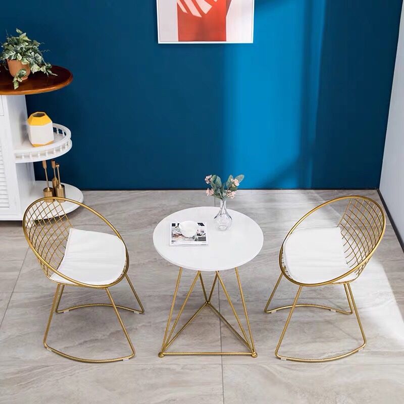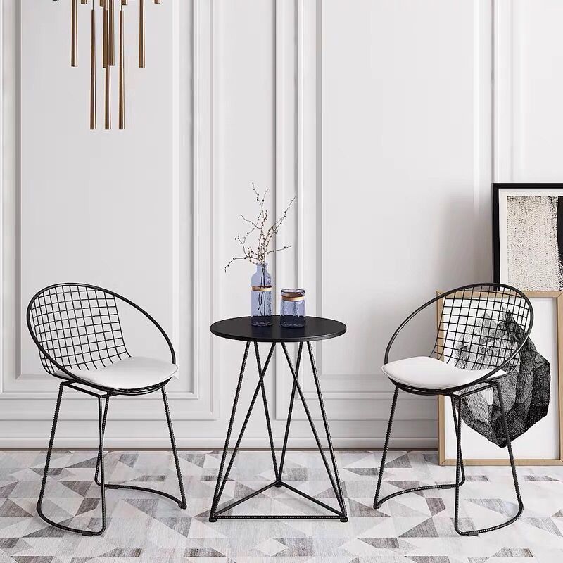 北欧铁艺阳台小茶几简约休闲奶茶店咖啡厅大理石圆桌椅组合三件套