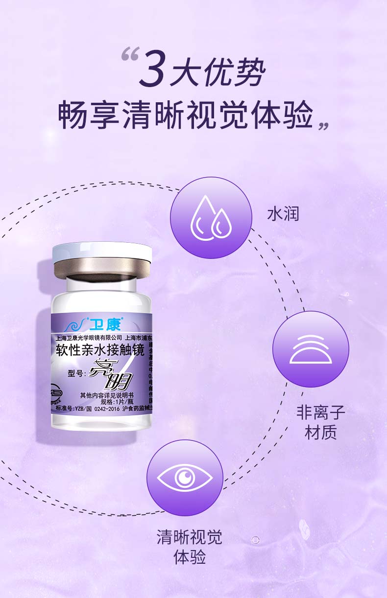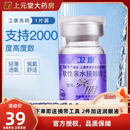 卫康亮明隐形近视眼镜年抛盒透氧高度数1200官网旗舰正品1片装sk