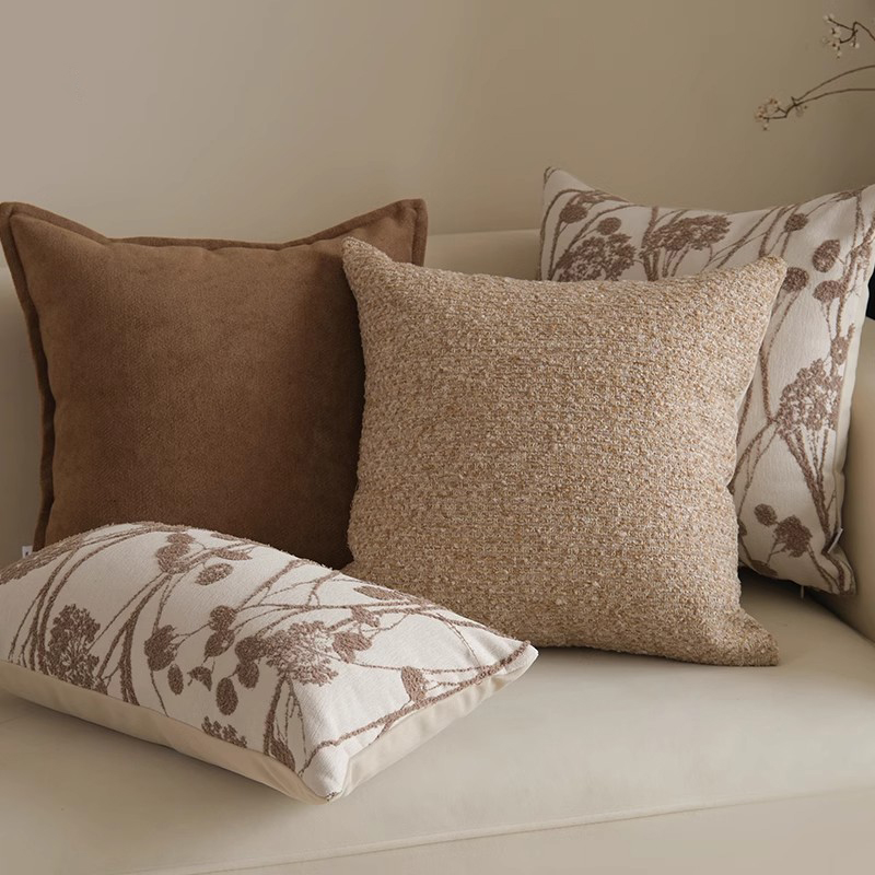 IKER复古咖棕色抱枕客厅沙发轻奢高级感床头靠背垫飘窗靠枕套含芯