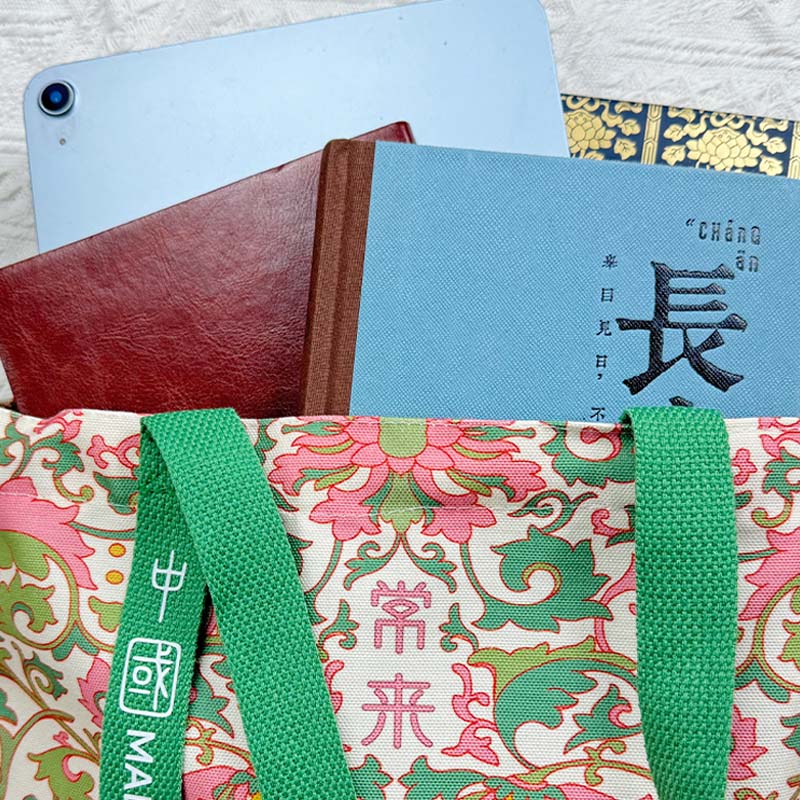 西安粉莲缠枝帆布包文创手提特色博物馆纪念包包帆布袋大唐不夜城