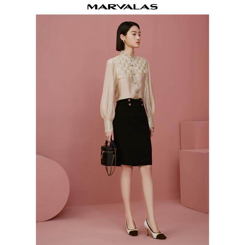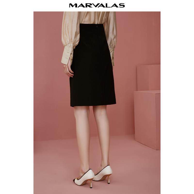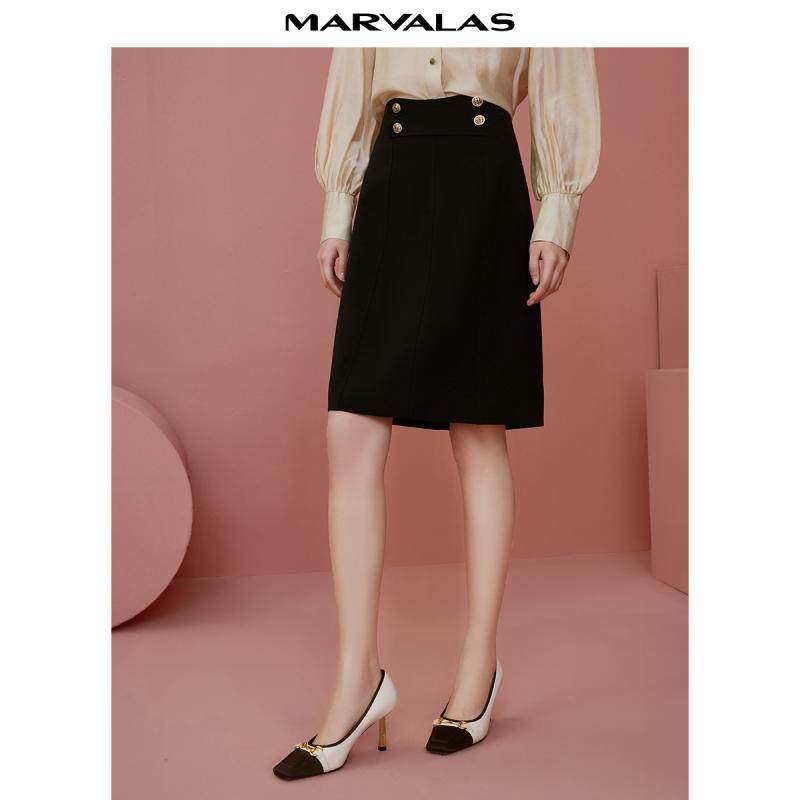 【商场同款】曼德诗高腰半身裙2025春夏新款纯色A字裙气质五分裙