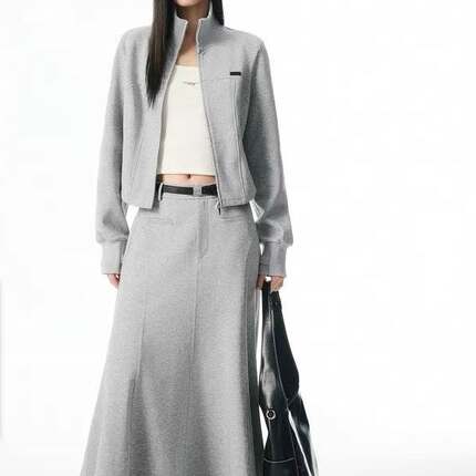 【商场同款】25秋季新款针织空气层立领长袖外套套装女A3BBF3215