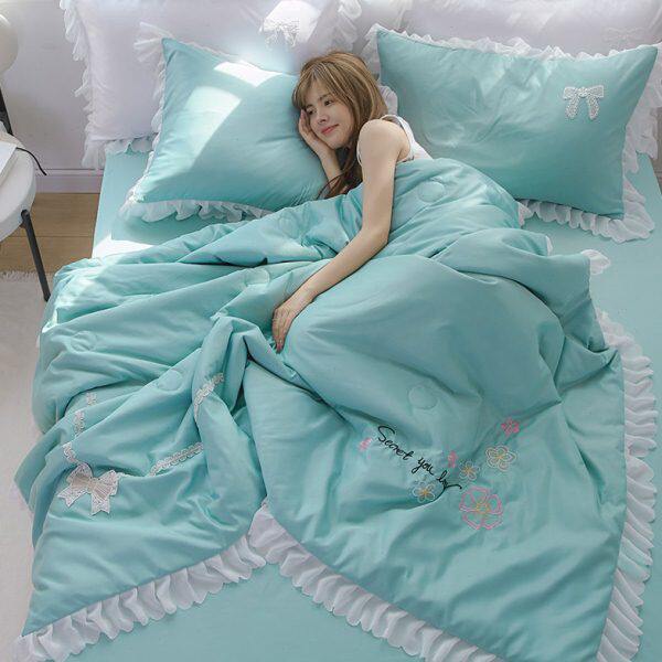 床单公主风夏季夏被四件套单件少女心绣花可水洗空调被真丝夏凉被