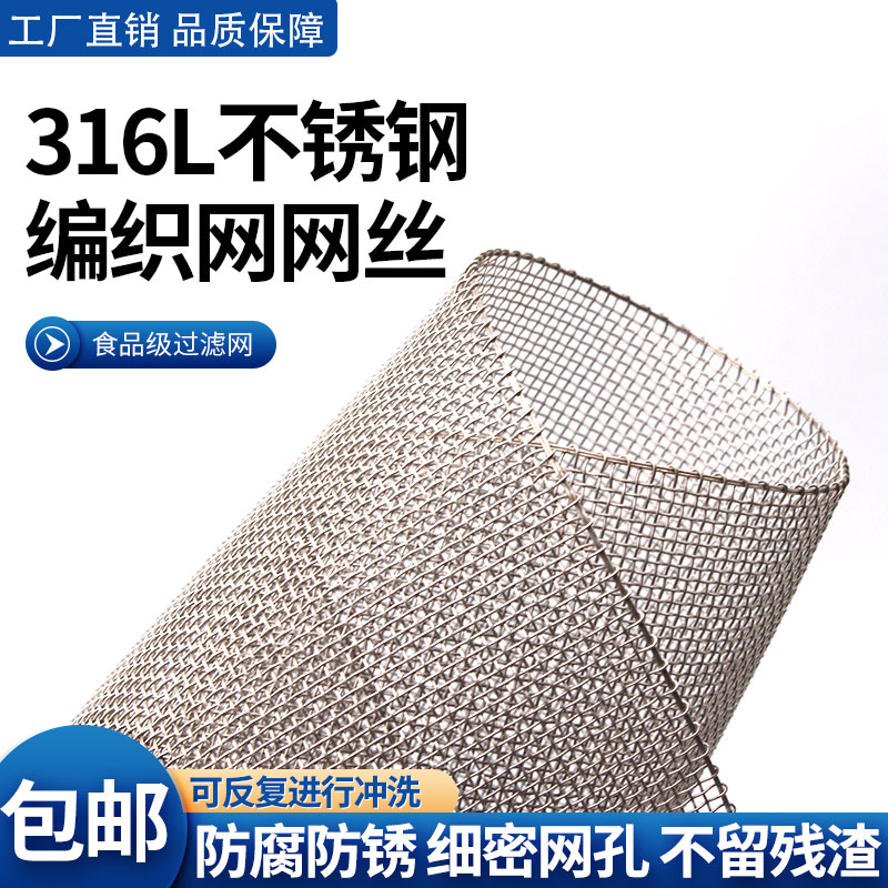 316L不锈钢网丝食品级编织网超细过滤耐酸碱腐蚀多规格加厚目筛网