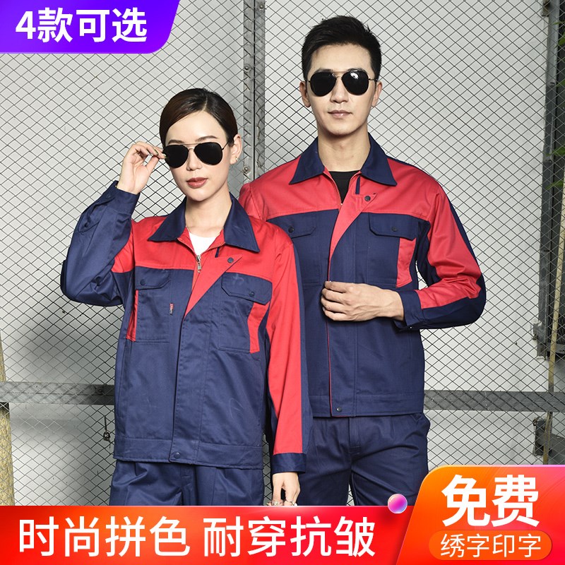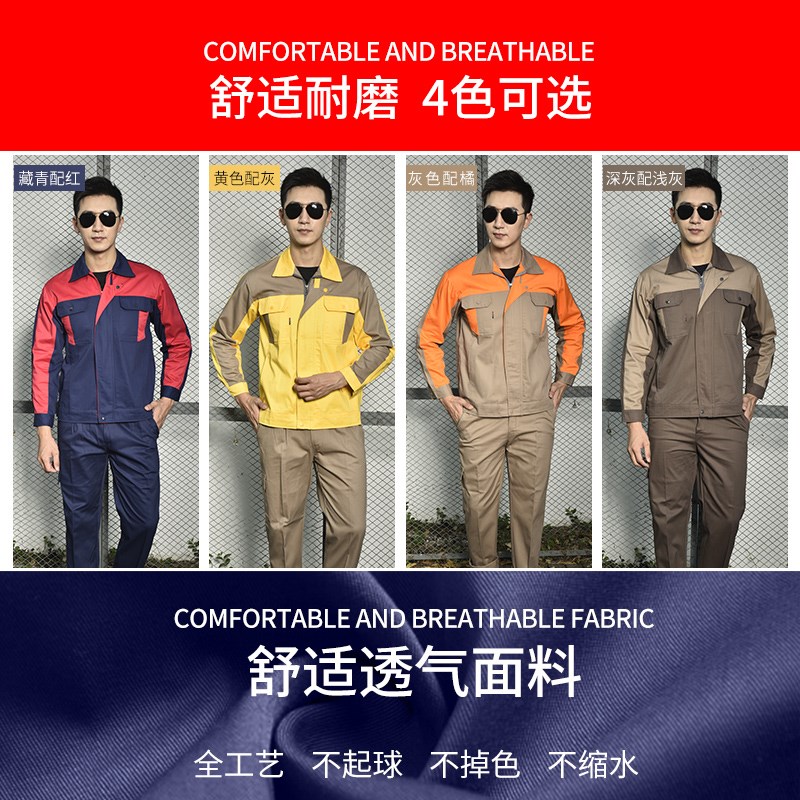纯棉工作服套装男劳保服长袖电焊工汽修服工地工作服工厂车间耐磨