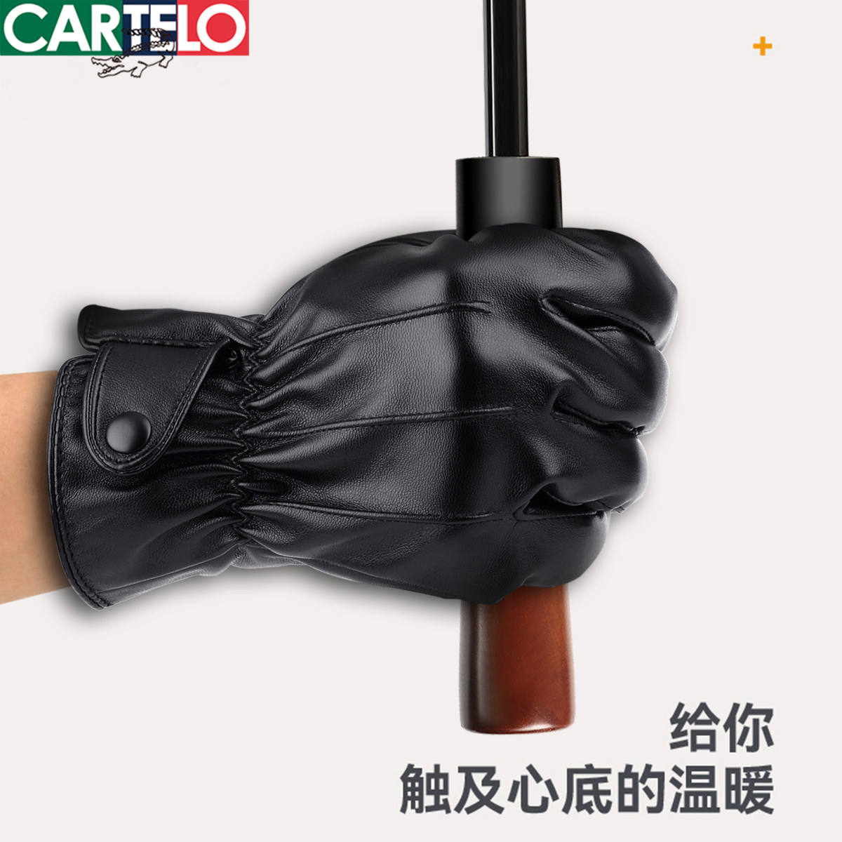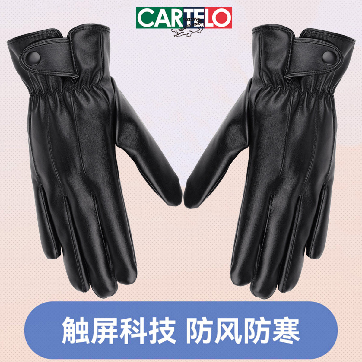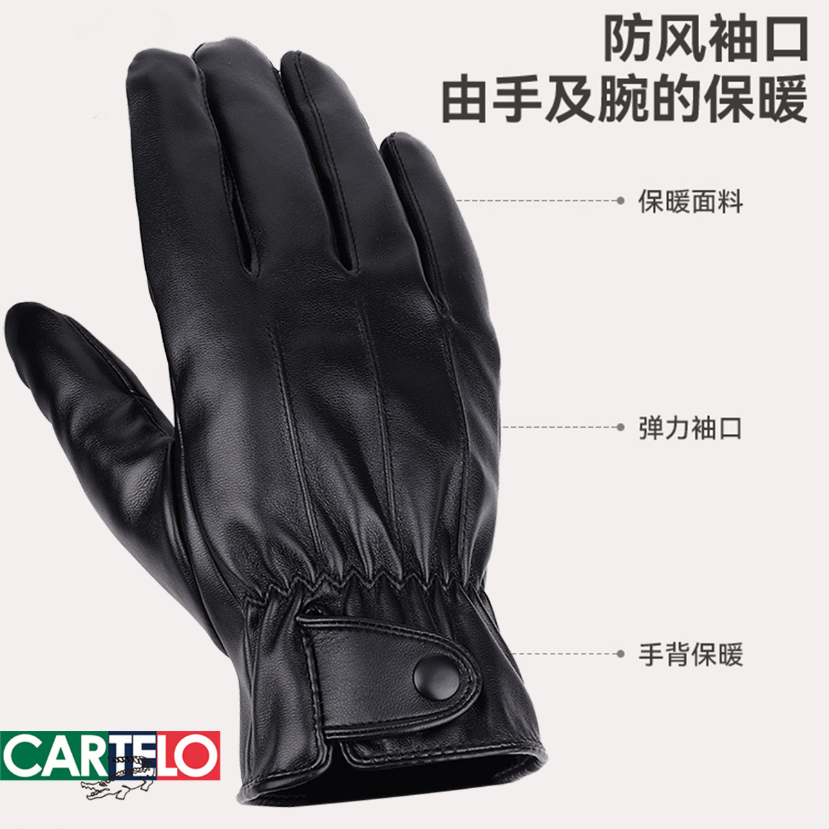 卡帝乐鳄鱼皮手套男冬季骑行加绒加厚保暖防风防水触屏摩托机车