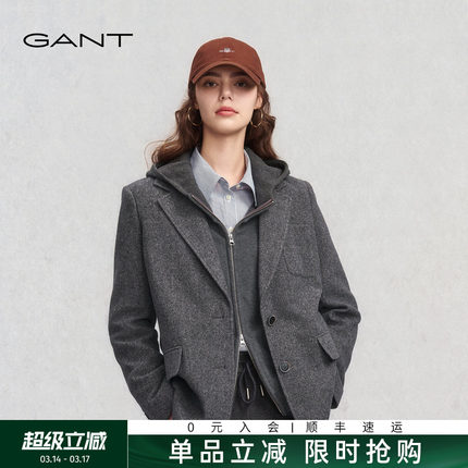 【100%绵羊毛】GANT/甘特春秋女士外套美式休闲老钱风复古单西服