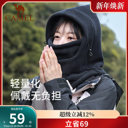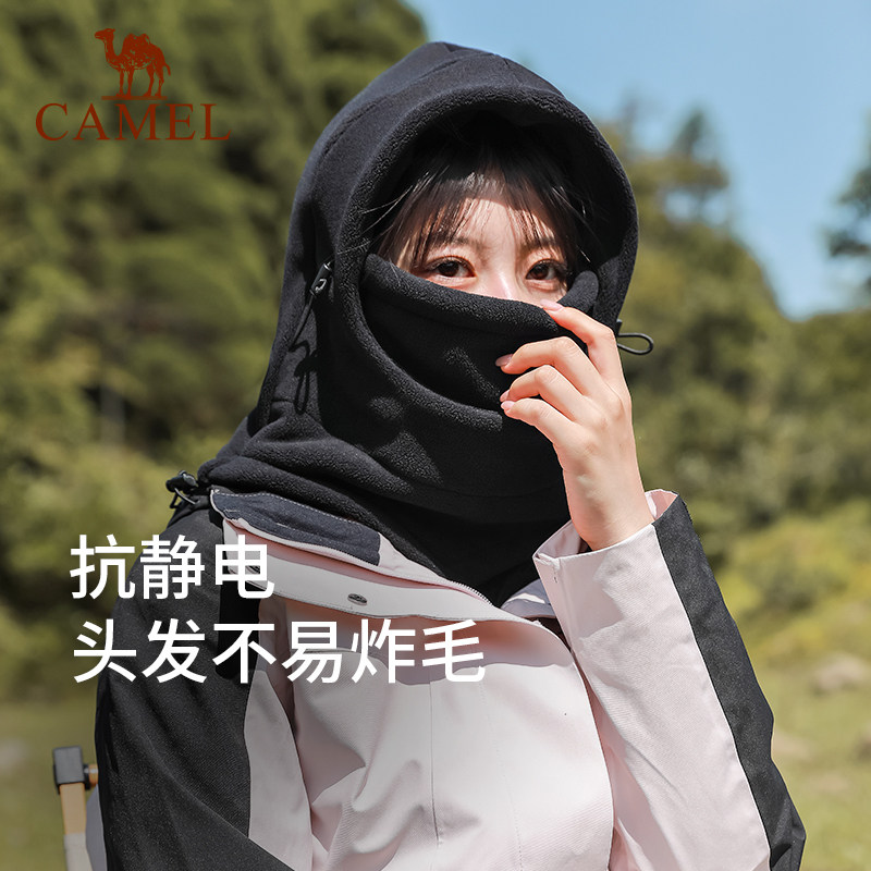 骆驼冬加绒套头帽男女防风防寒巴拉克拉法帽子保暖围巾一体帽