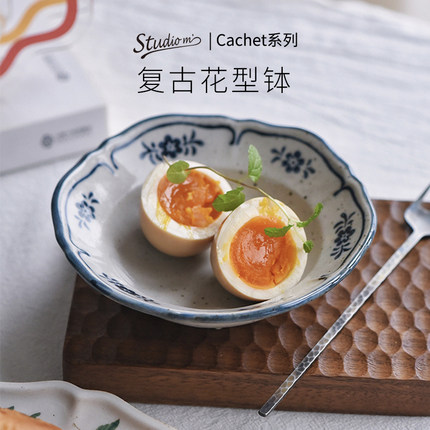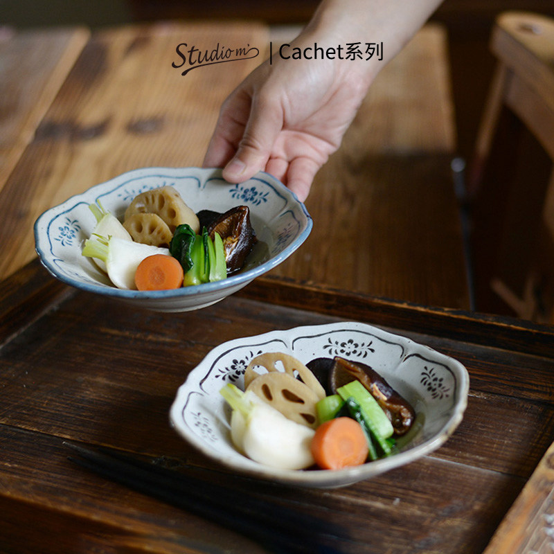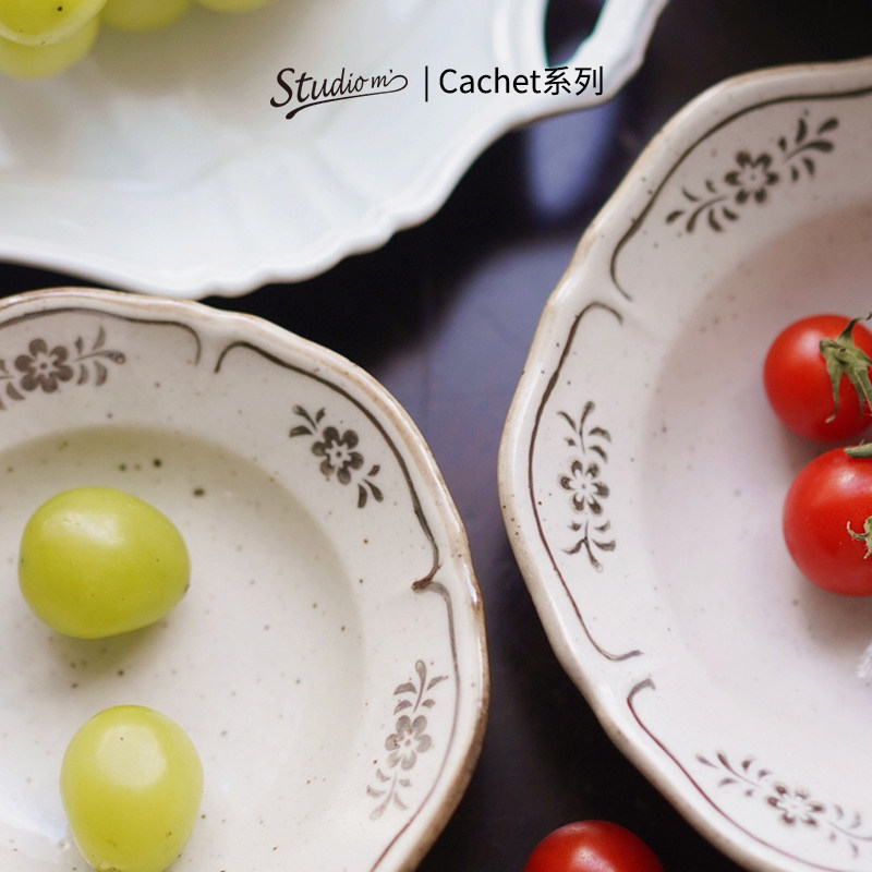 日本Studio M复古手绘粗陶钵碗深汤盘家用菜盘水果盘零食盘沙拉碗