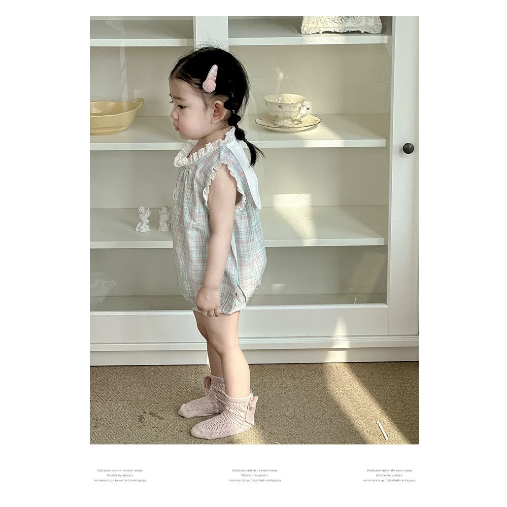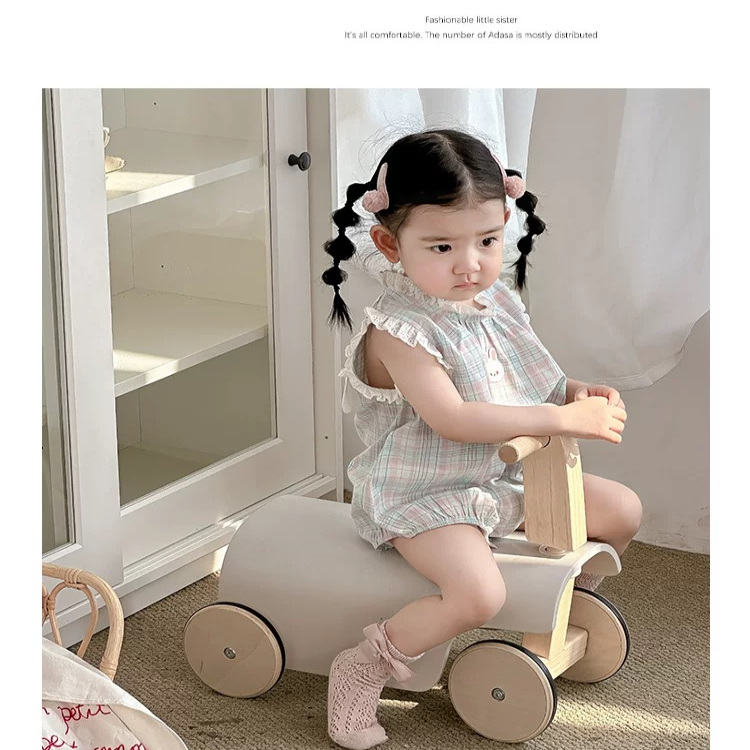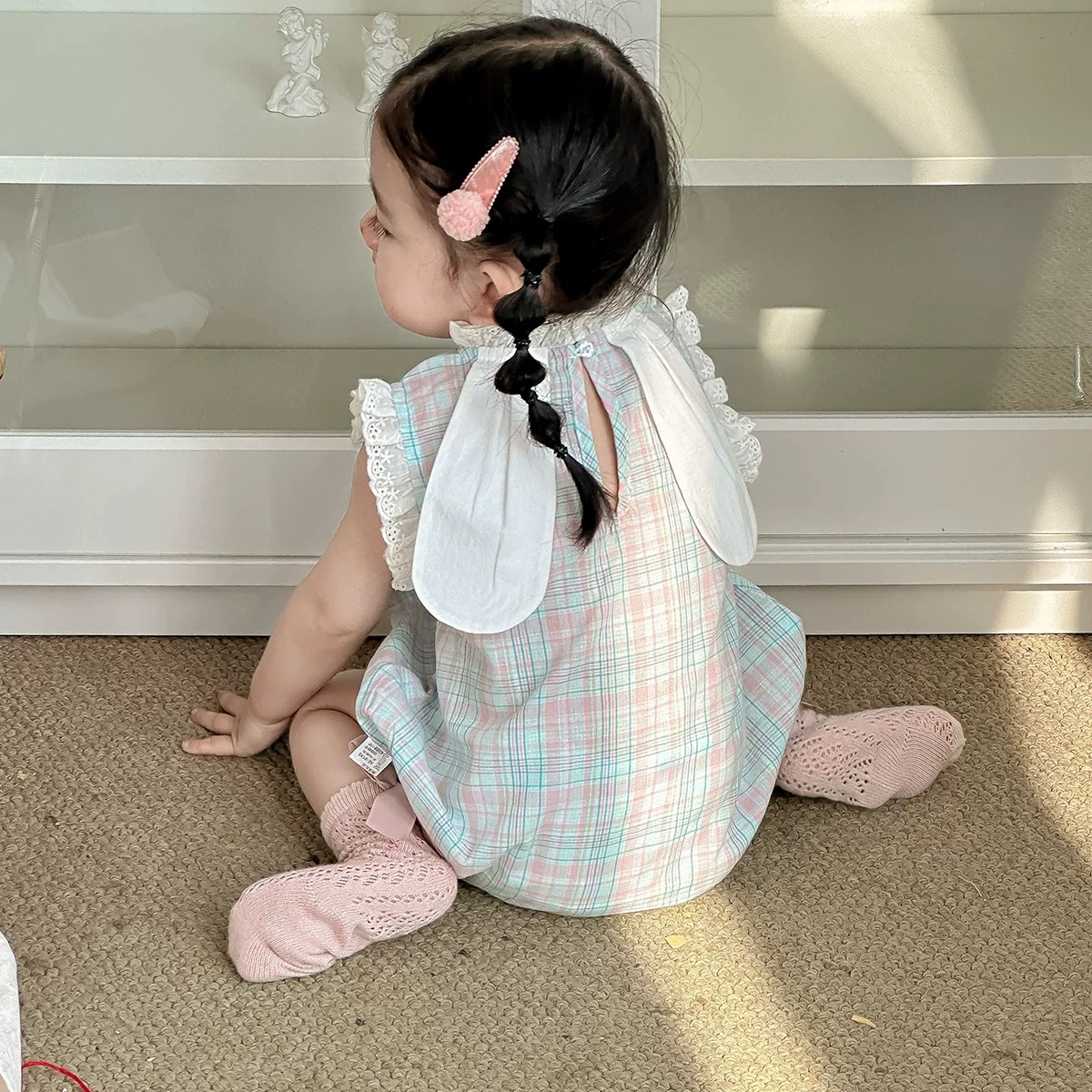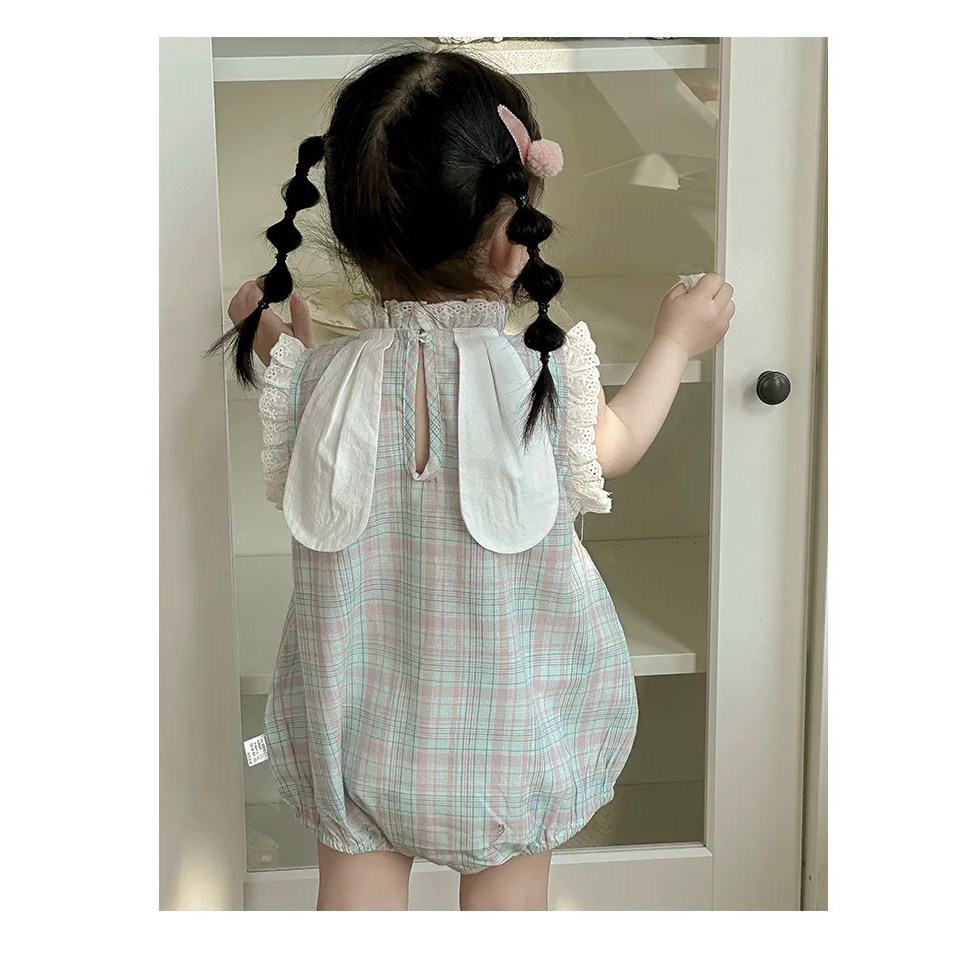 婴幼儿衣服夏季薄款女宝宝连体衣满月百天可爱格子兔子包屁衣夏装