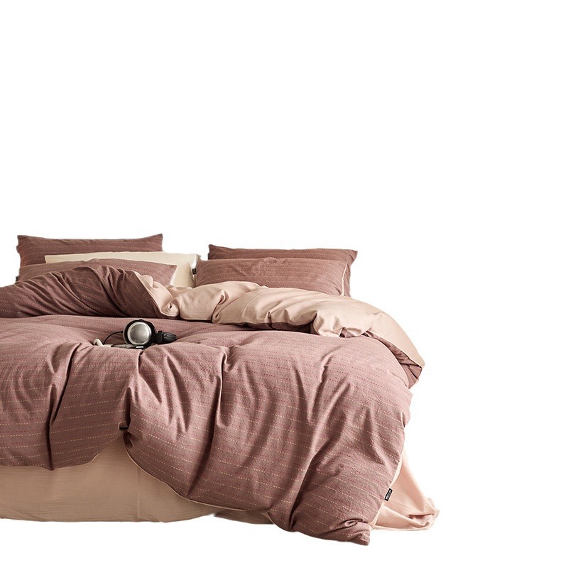 日式A类简约纯棉色织提花磨毛四件套加厚秋冬100全棉精密亲肤软糯