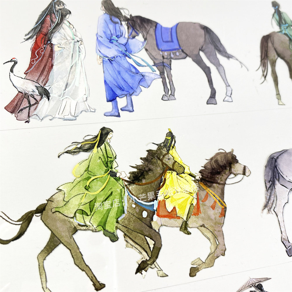 手帐分装胶带江湖侠侣马男女背影zero古风PET素材账手机壳贴纸