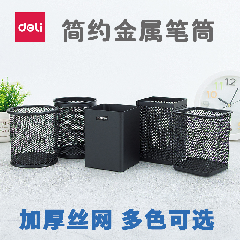 清仓得力9153简约日式笔筒铁网办公组合座金属放笔创意时尚办公室多功能方形铁桶个性复古可爱桌面整理9174