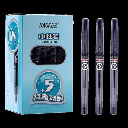 宝克PC1808中性笔 36支黑笔0.5mm笔芯全针管水性笔黑色签字笔文具
