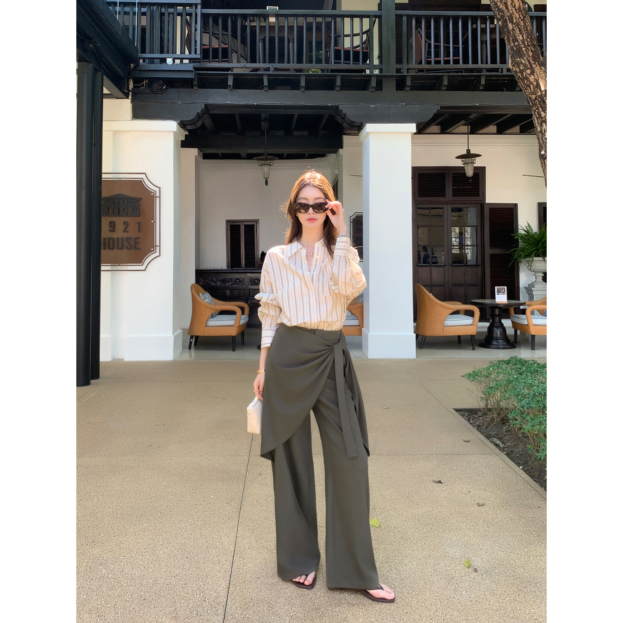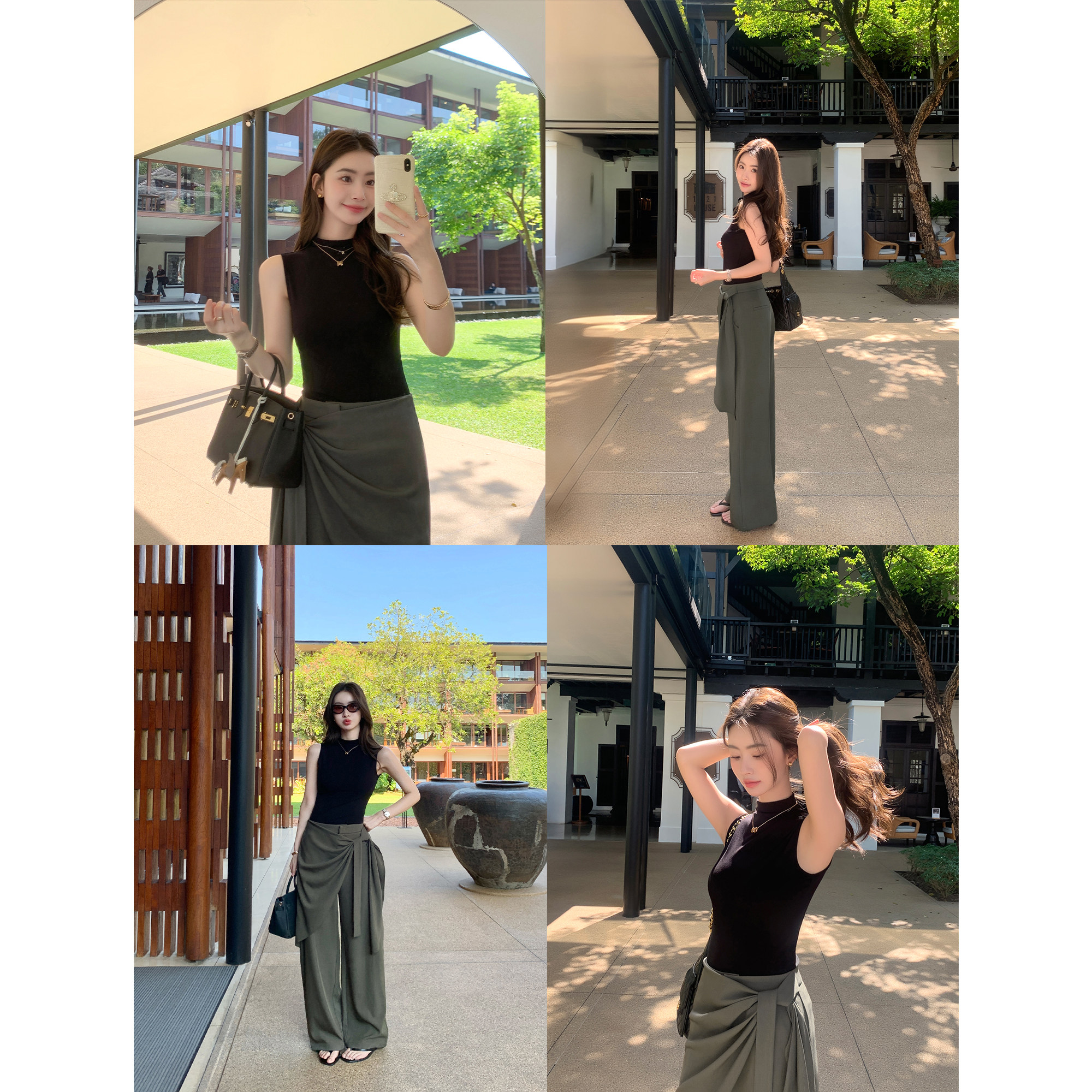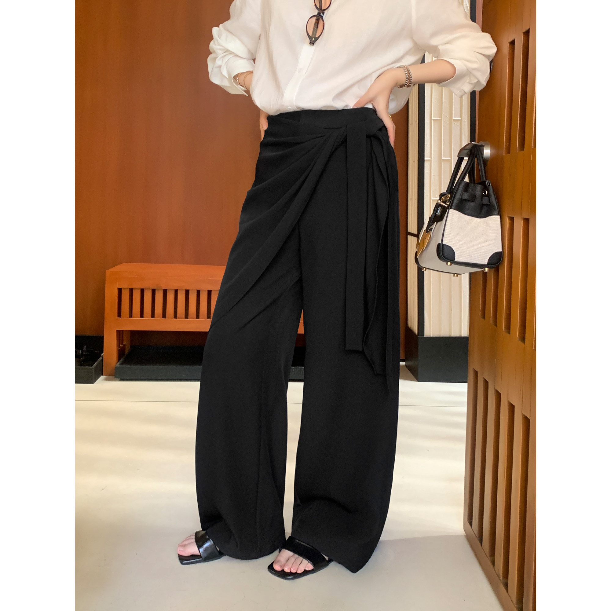 pusumede 解构美学 假两件绑带休闲裤女设计感小众宽松阔腿长裤