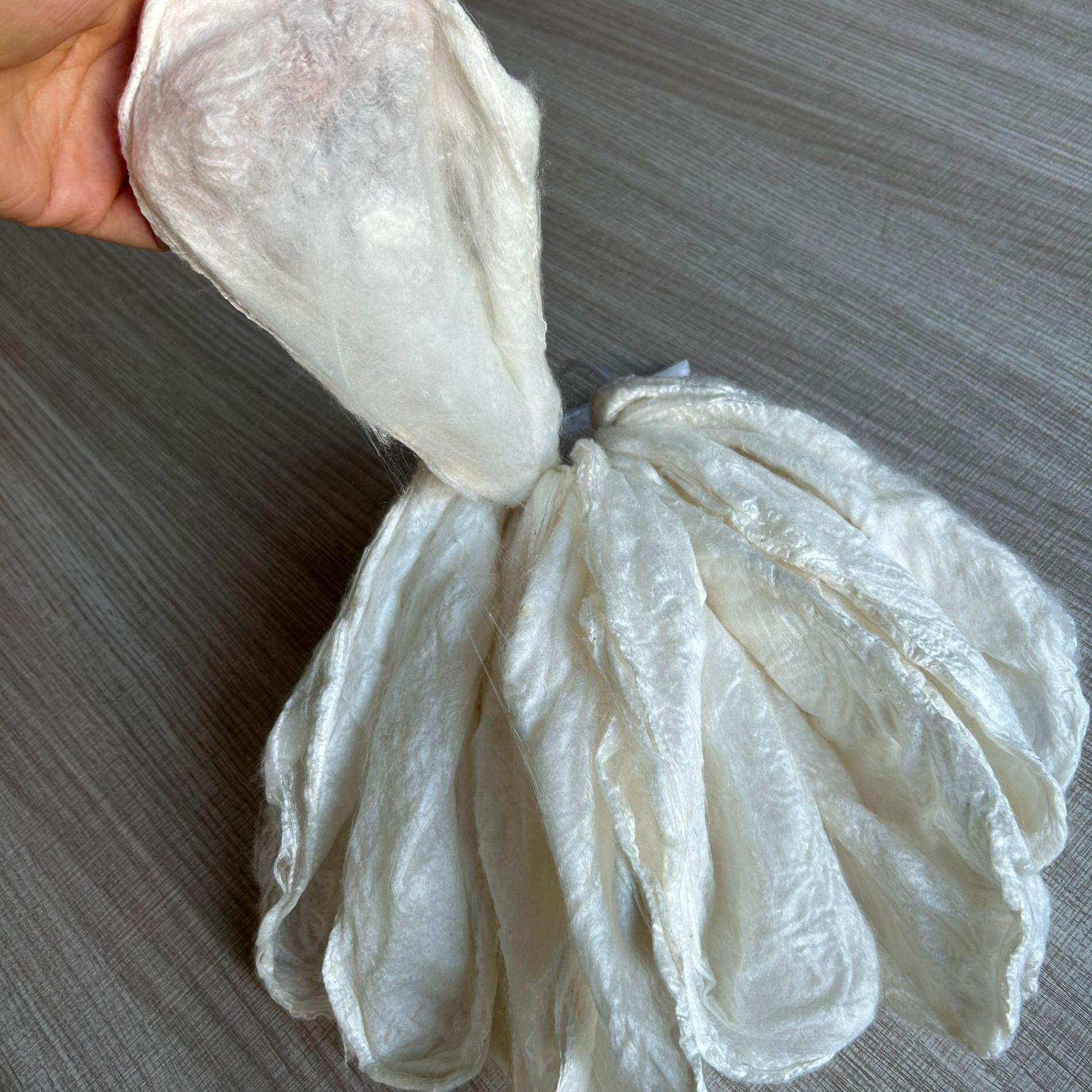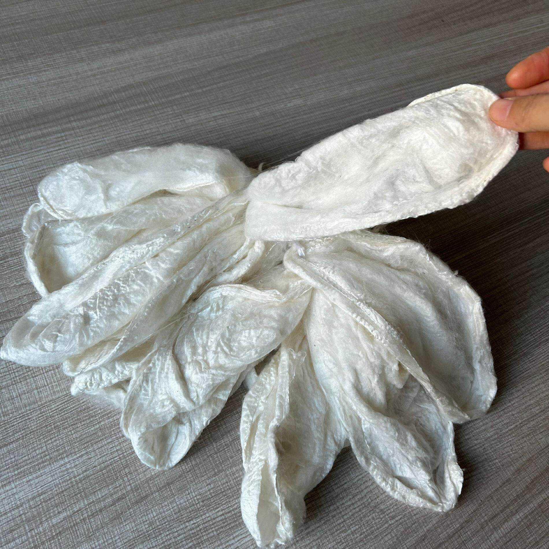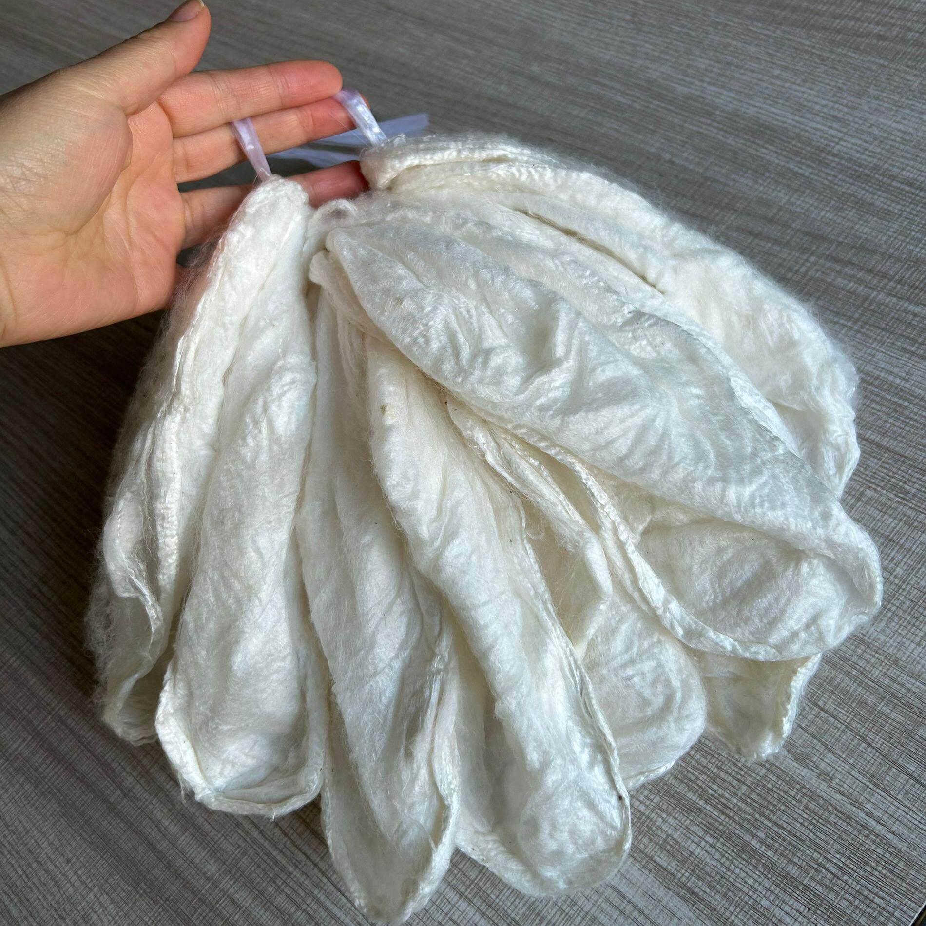 农家纯手工桑蚕丝原料棉兜本白桑蚕丝小帽形做衣服被子原料批