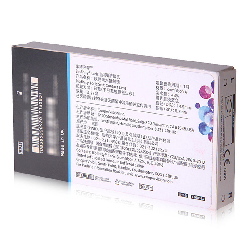 现货】库博佰视明散光高度数定制硅水凝胶月抛近视隐形眼镜3片QX