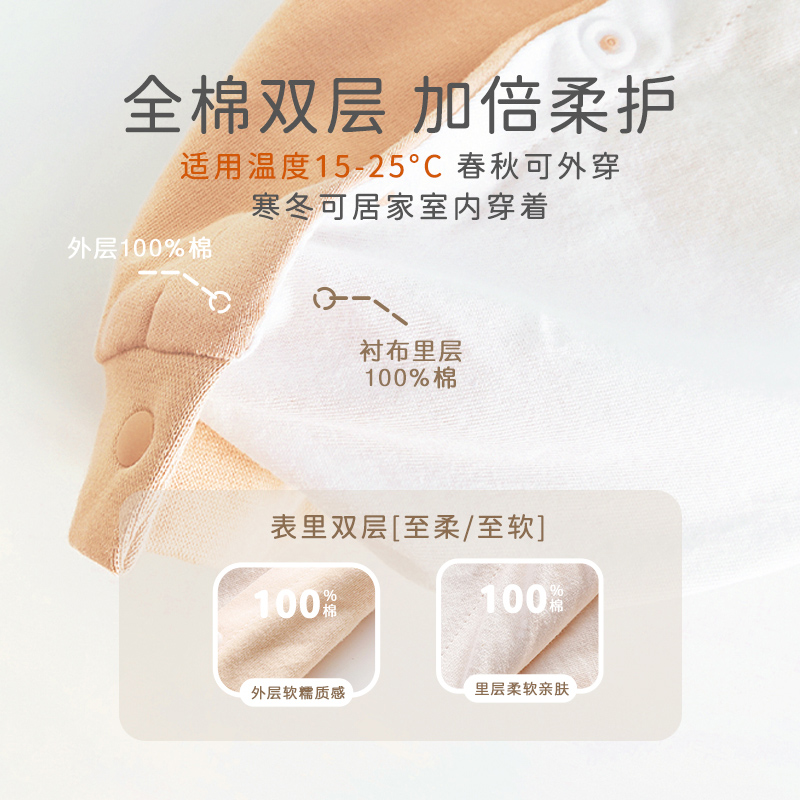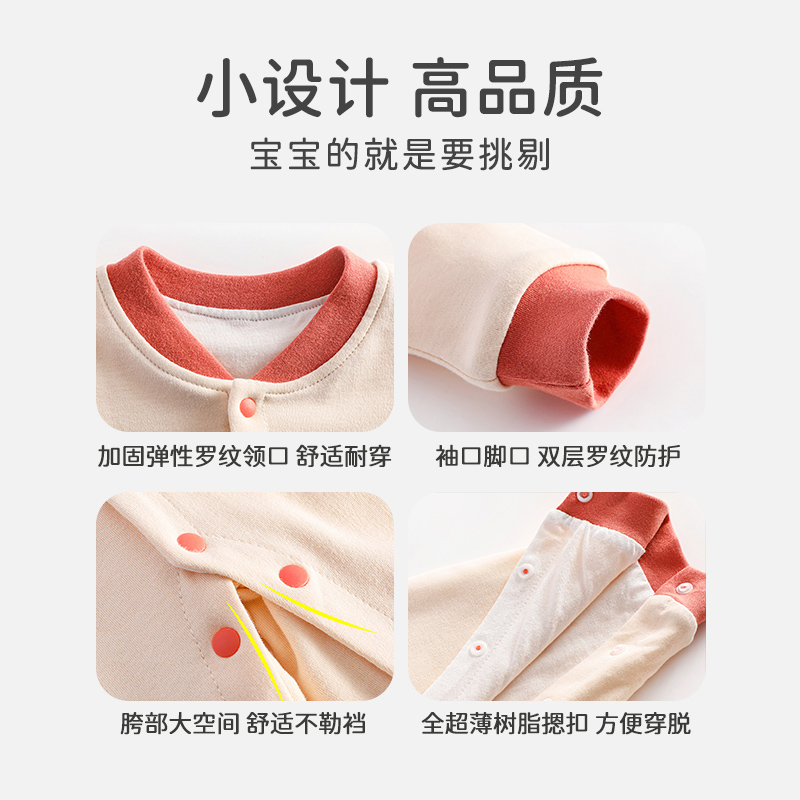 婴儿连体衣双层宝宝春秋纯棉哈衣新生儿爬服长袖婴幼儿家居衣服