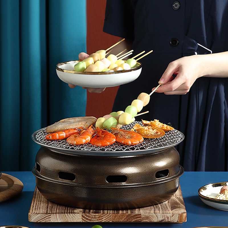 围炉煮茶韩式家用烧烤炉商用木炭烤肉炉日式室内无烟烤架圆形碳炉