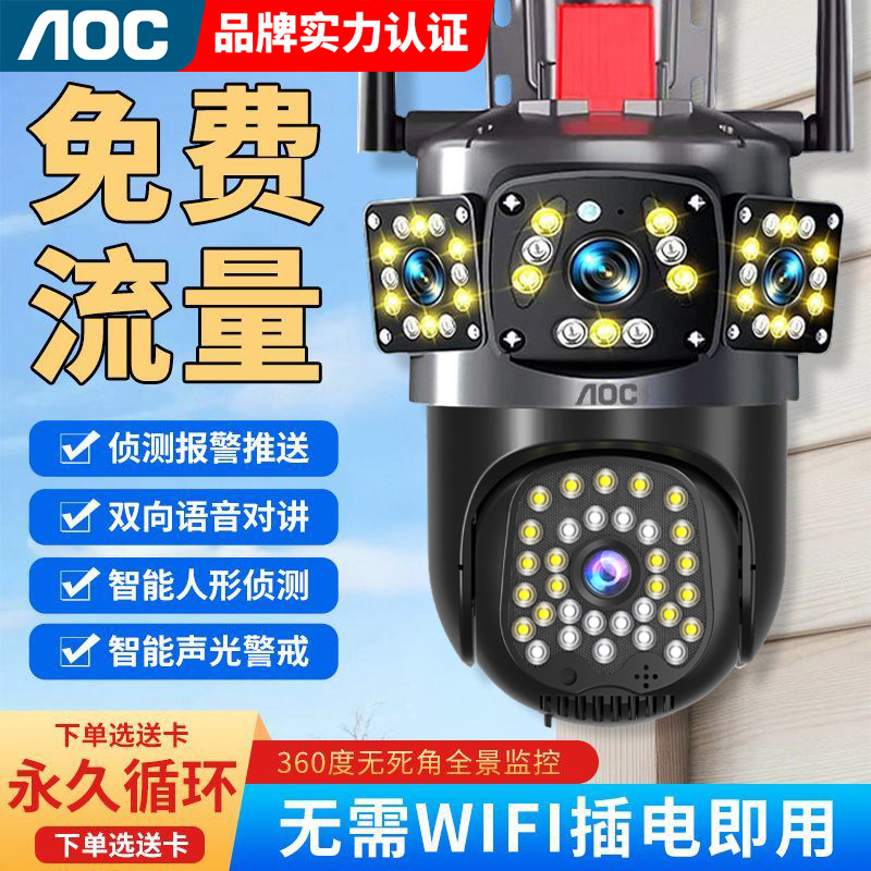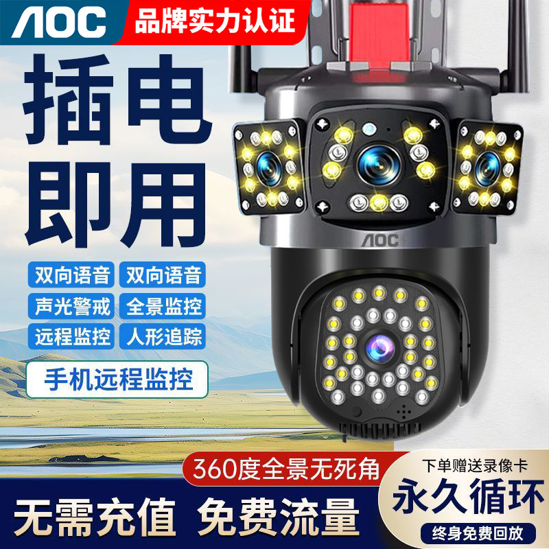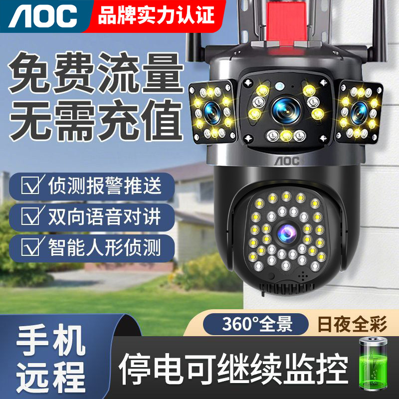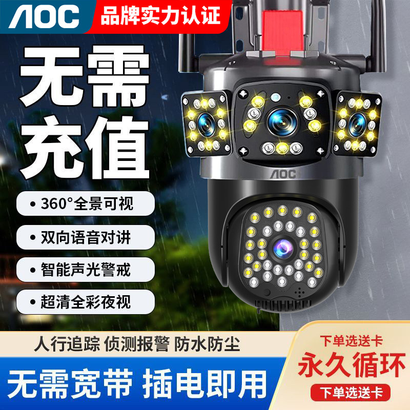 摄像头监控器360度无死角家用手机远程室外高清夜视4G无线太阳能