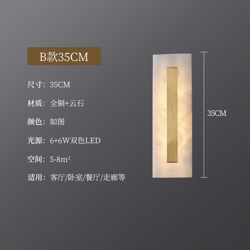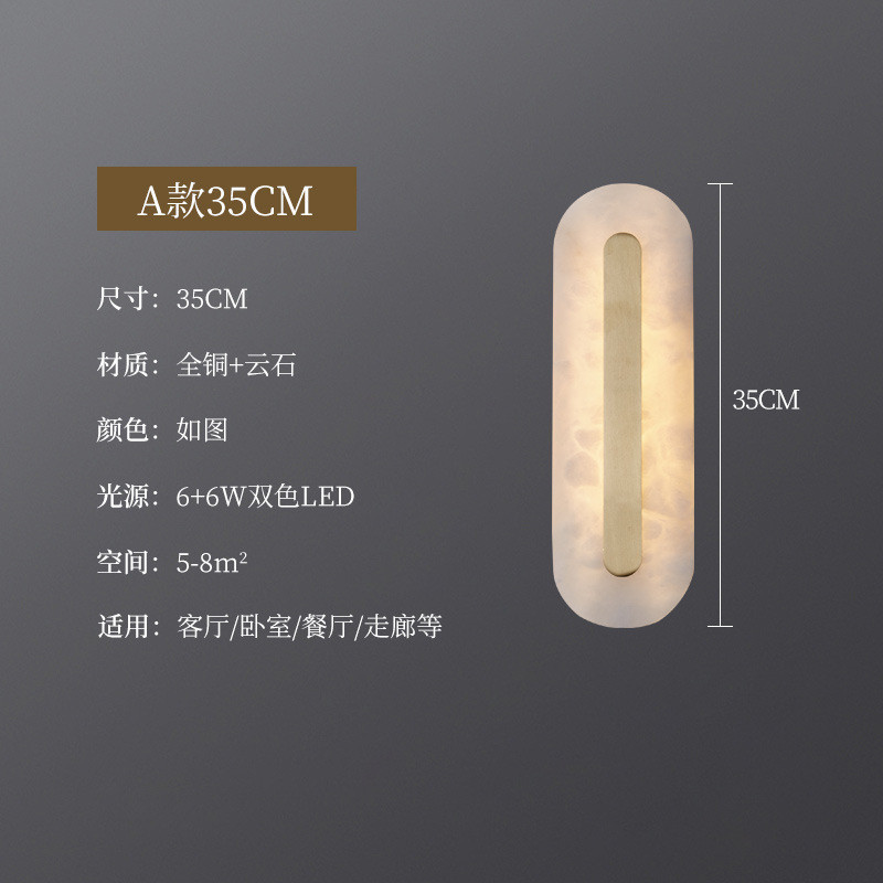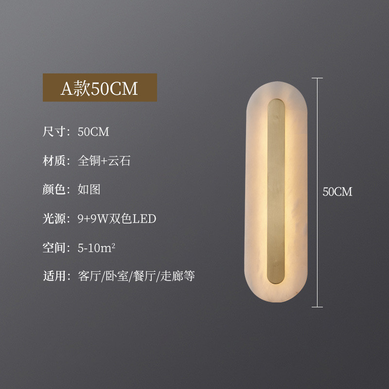 【功成圆满】新中式云石壁灯现代客厅卧室全铜背景灯床头灯过道灯