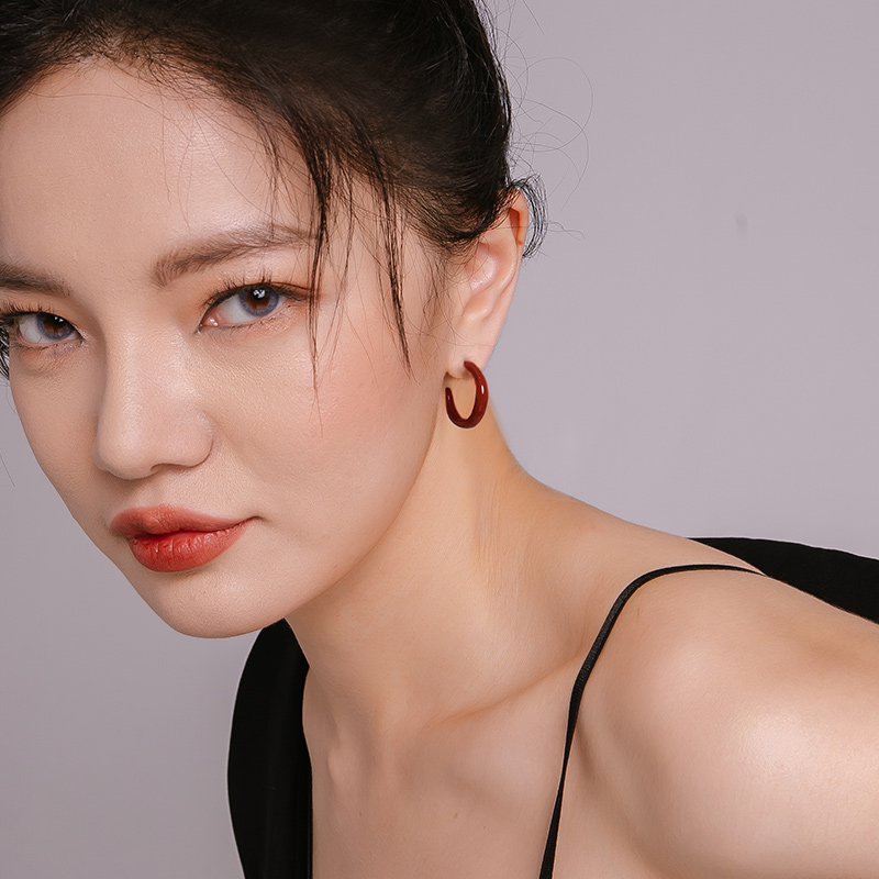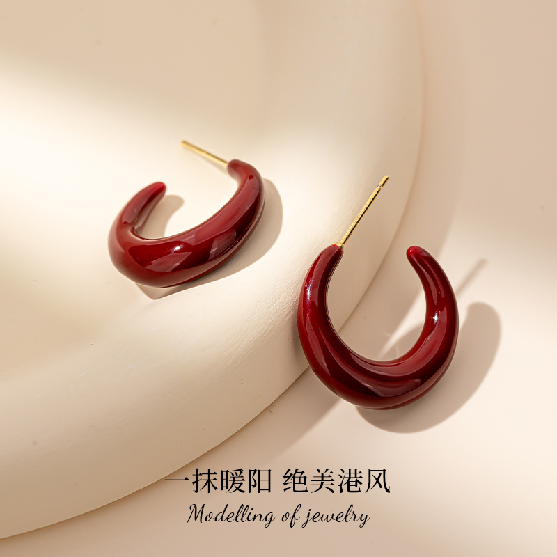 红色C型耳环耳饰耳钉女2025新款爆款高级感秋冬巨好看独特耳坠