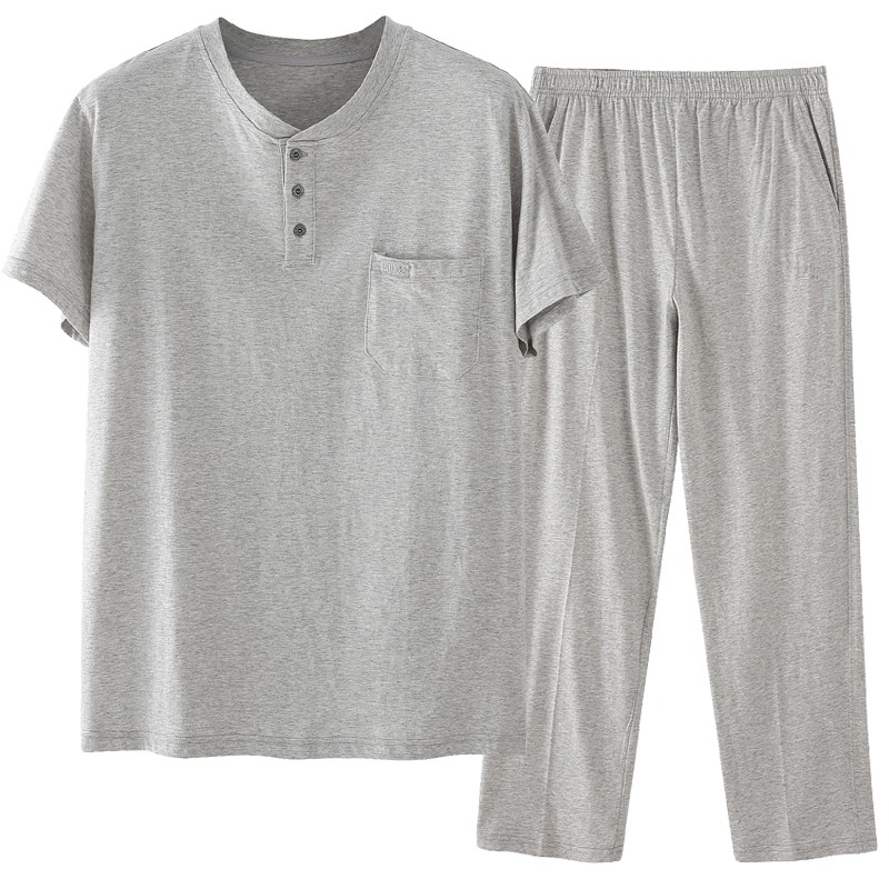 夏季新款男士纯棉短袖睡衣睡裤套装加肥大码宽松爸爸汗衫空调衫