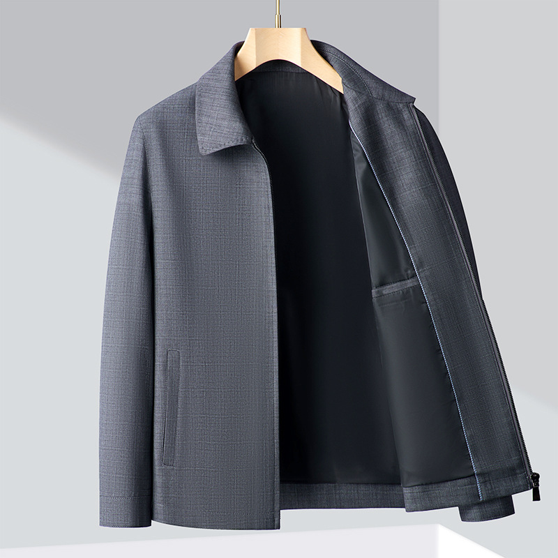 日本品质2025秋新款男士品质中老年羊毛夹克翻领茄克外套上衣男装