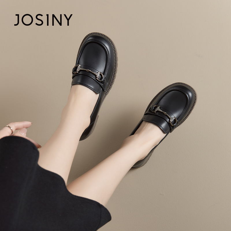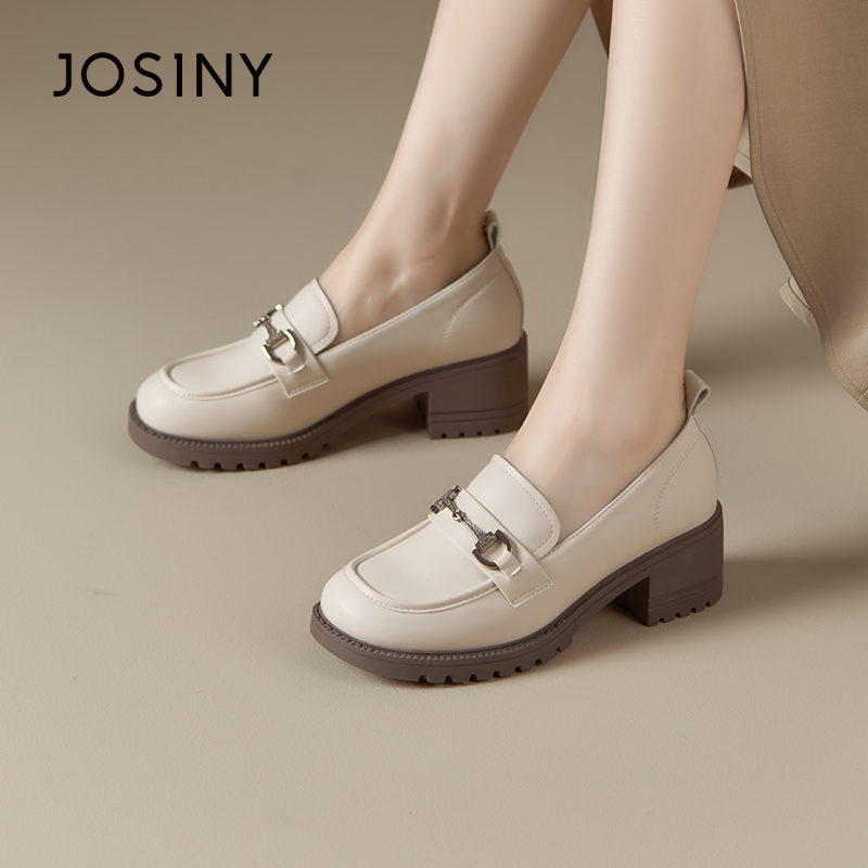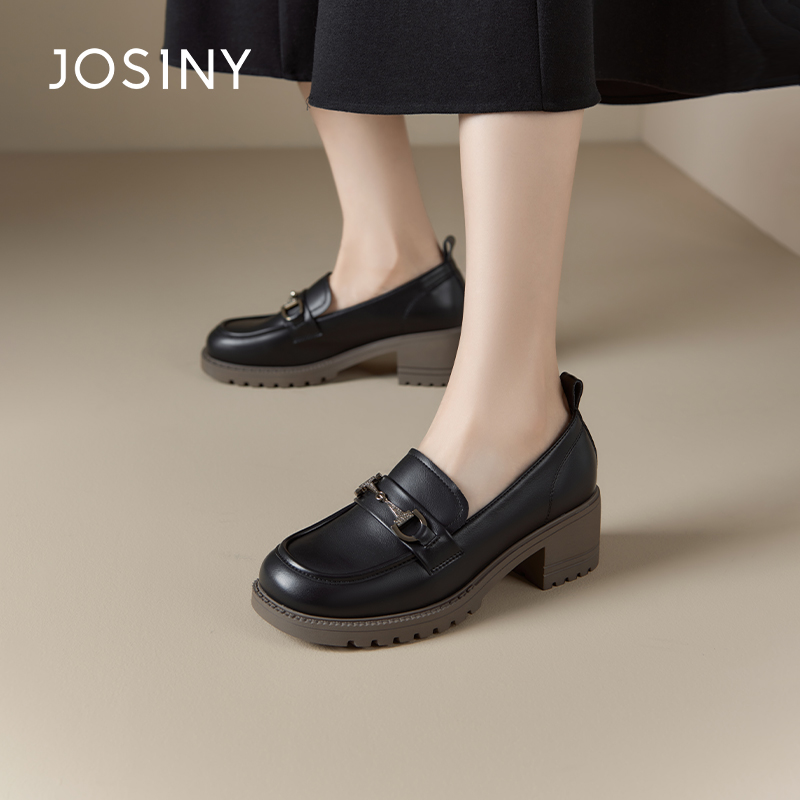 卓诗尼2025年新款中跟舒适乐福鞋春秋女鞋软底春秋季小皮鞋粗跟