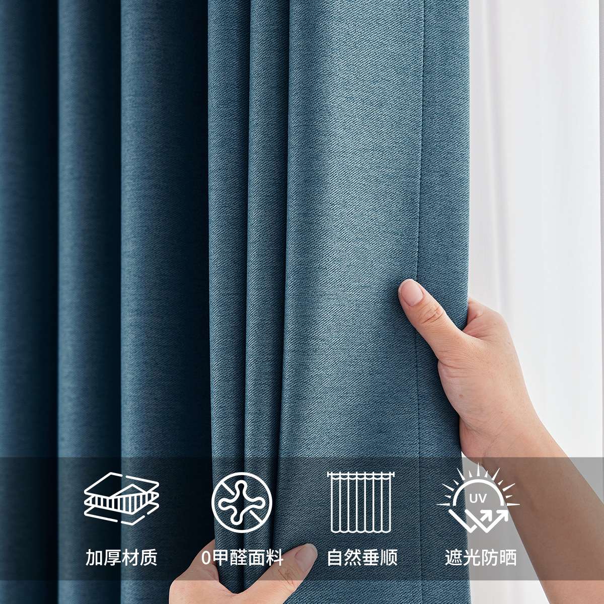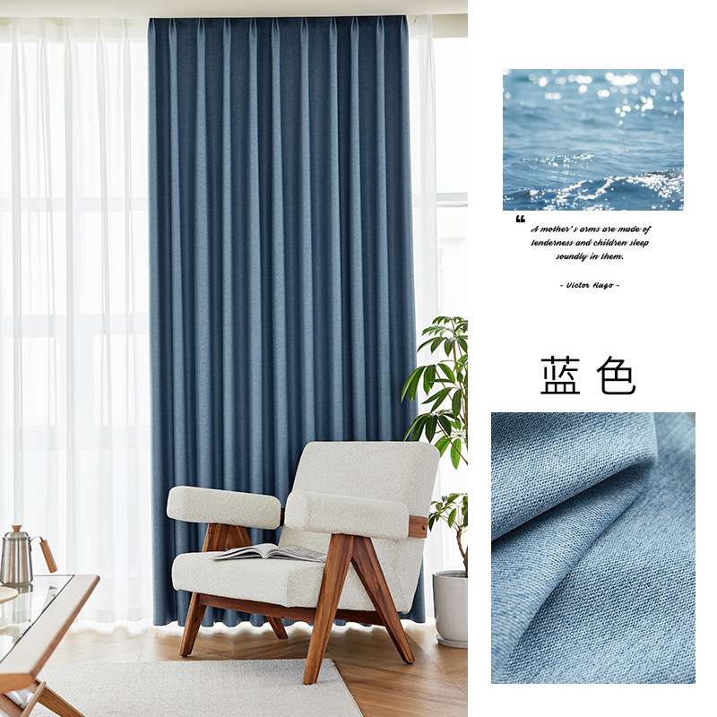 窗帘双面麻全遮光涤纶棉麻窗帘现代简约遮阳卧室客厅阳台飘窗遮光