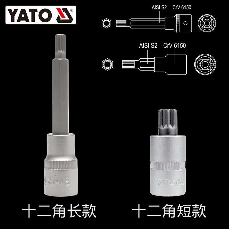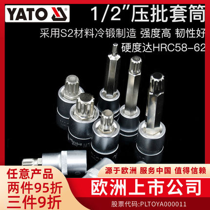 YATO易尔拓汽修1/2套筒压批头修车扳手旋具头十二角旋具头套筒头