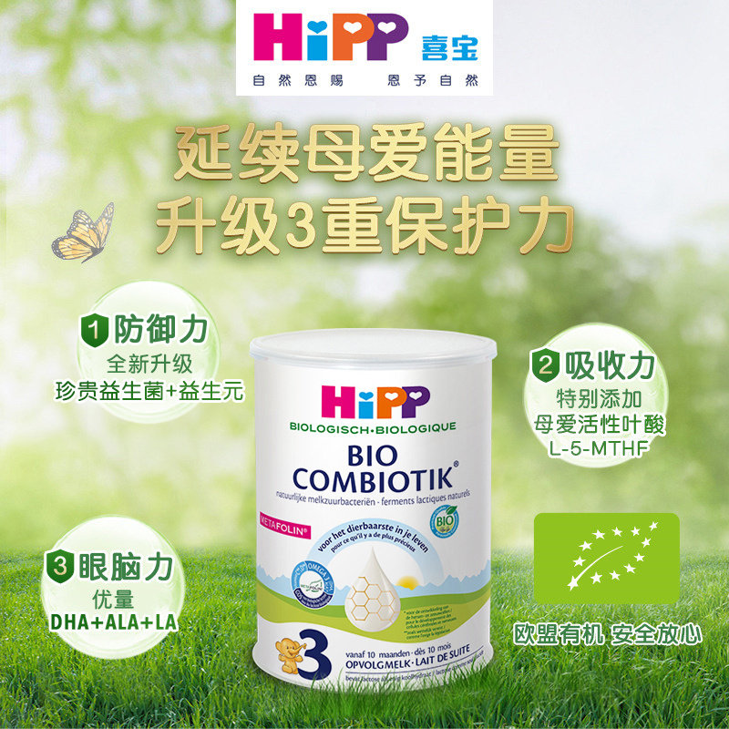 HiPP荷兰喜宝3段有机益生菌幼儿配方成长奶粉800克/原装正品3罐装