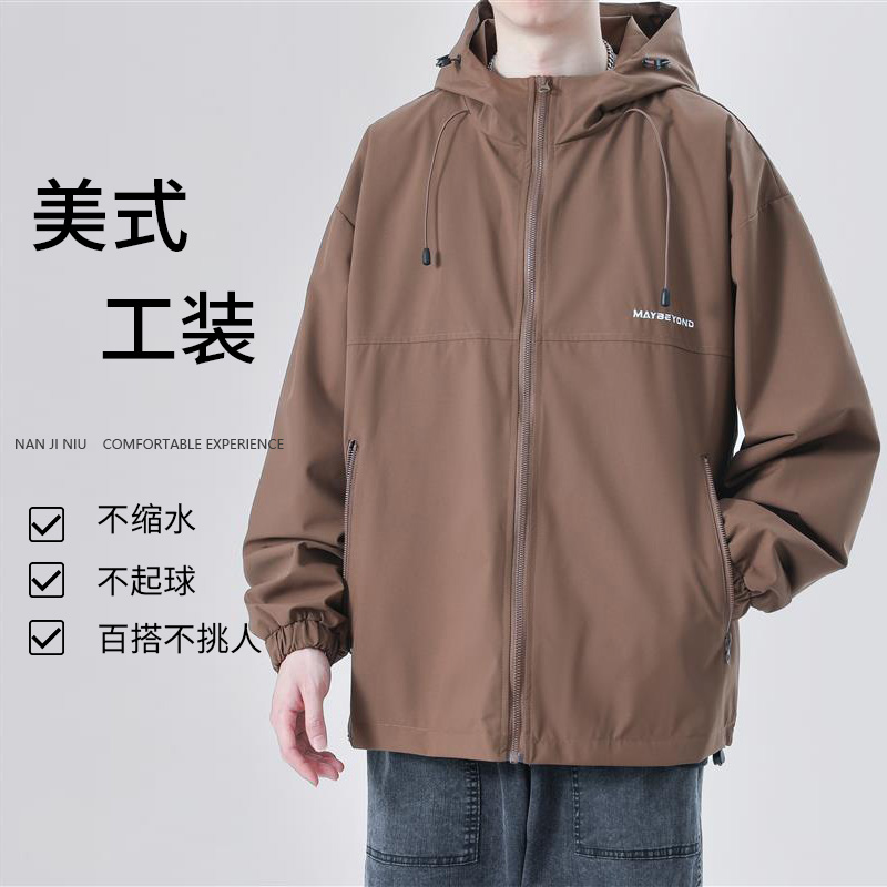 连帽冲锋衣外套男秋冬