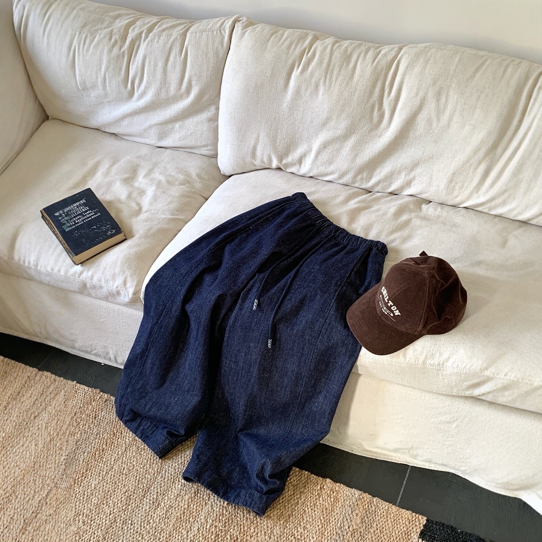 松紧腰系带休闲文艺牛仔长裤