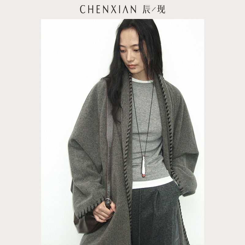 CHENXIAN辰现水煮羊驼毛真皮包边羊毛大衣中长款宽松毛呢呢子外套