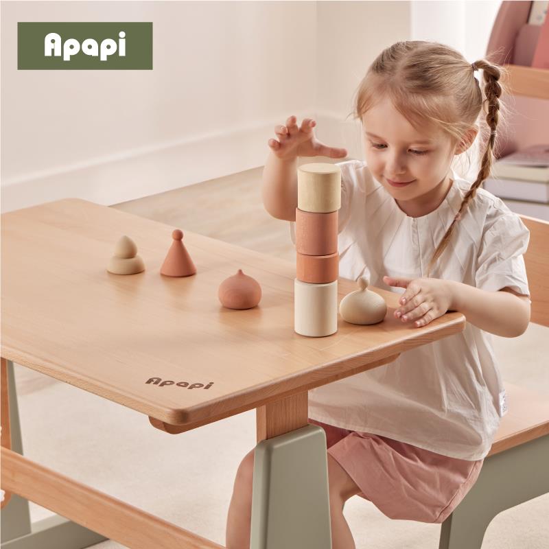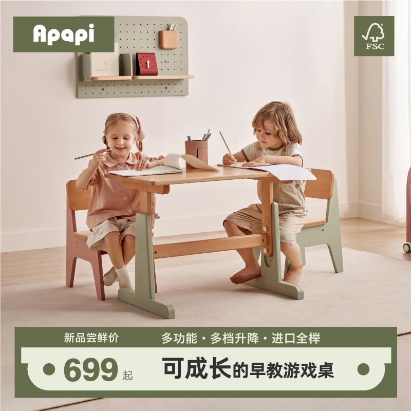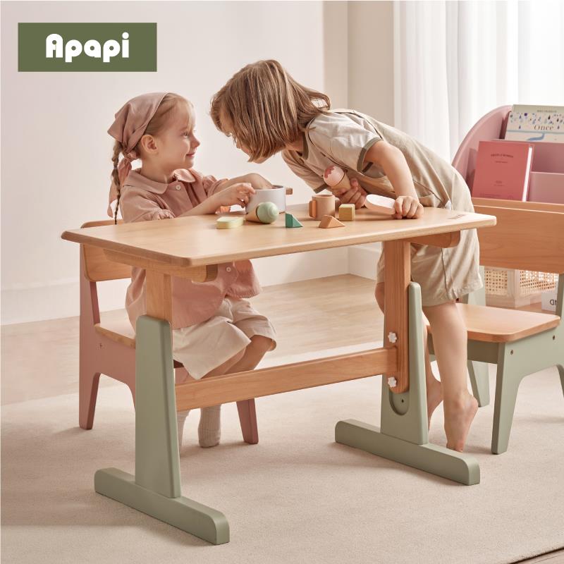 Apapi实木儿童学习桌小学生书桌可升降桌子写字桌家用课桌椅套装