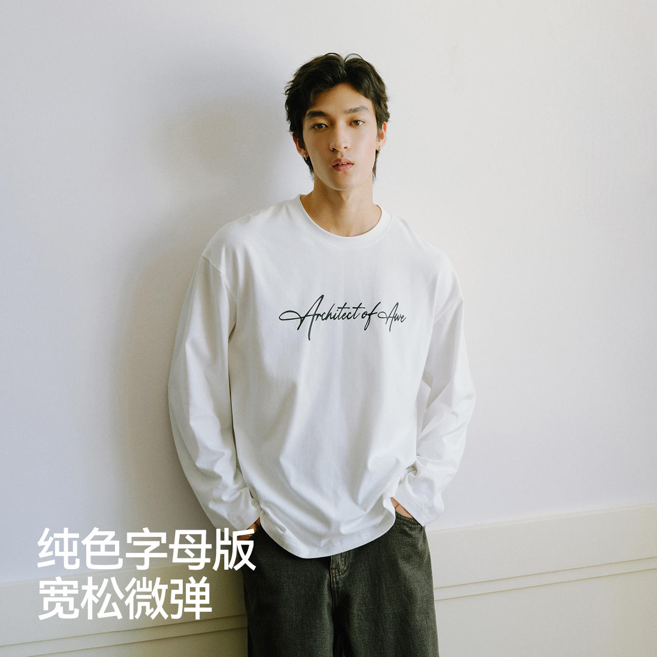 森马长袖T恤男纯棉白色内搭2025春秋新款打底上衣基础百搭情侣款