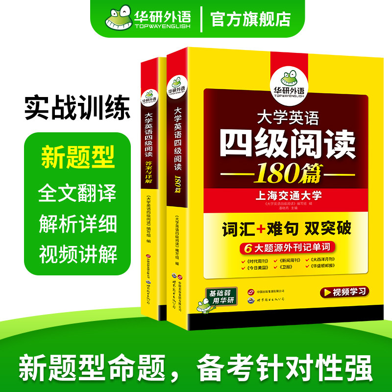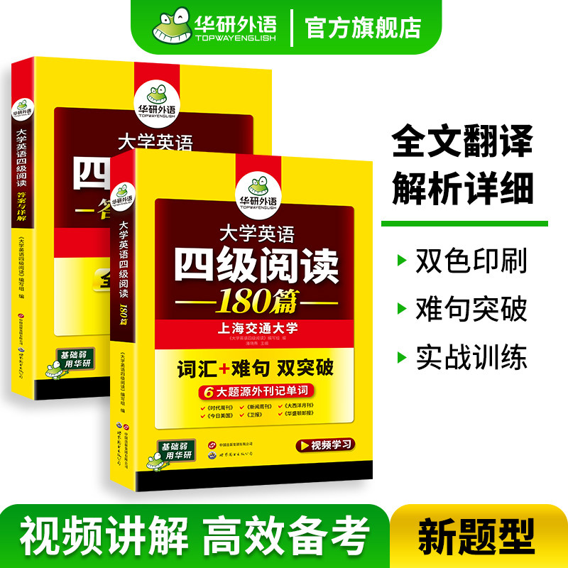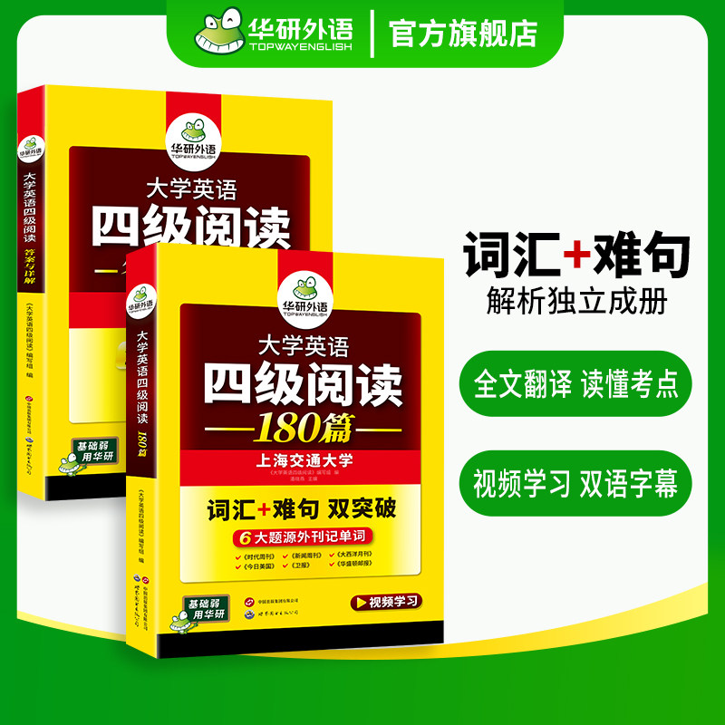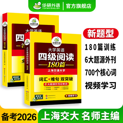 华研外语英语四级阅读备考2026年6月大学英语四级阅读理解180篇强化专项训练书阅读真题考试资料cet4级词汇单词听力翻译与写作文