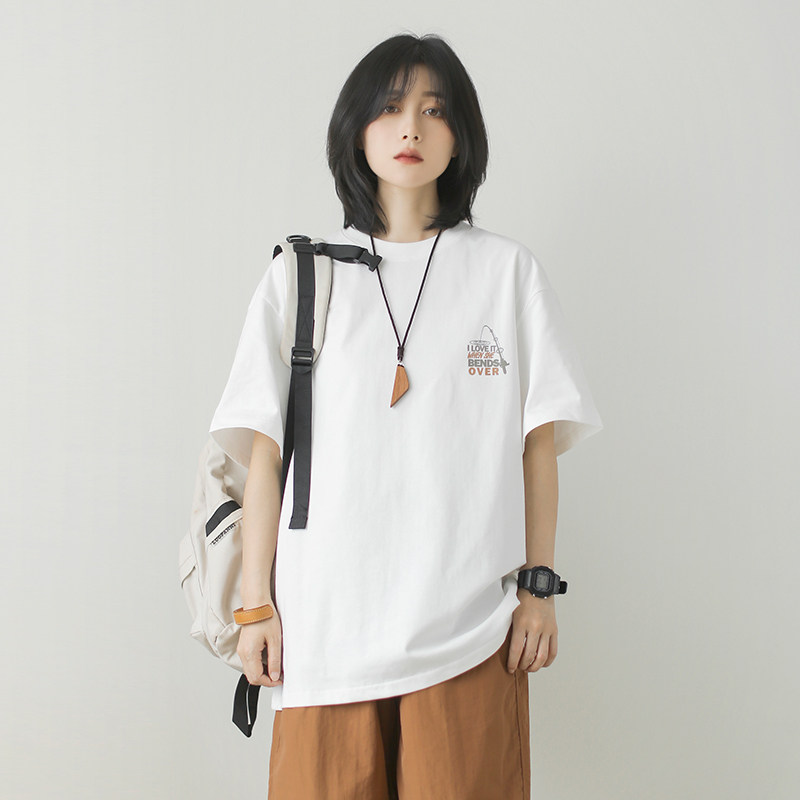 夏日潮复古短袖女学院风学生纯棉bf宽松街头中性情侣创意印花T恤