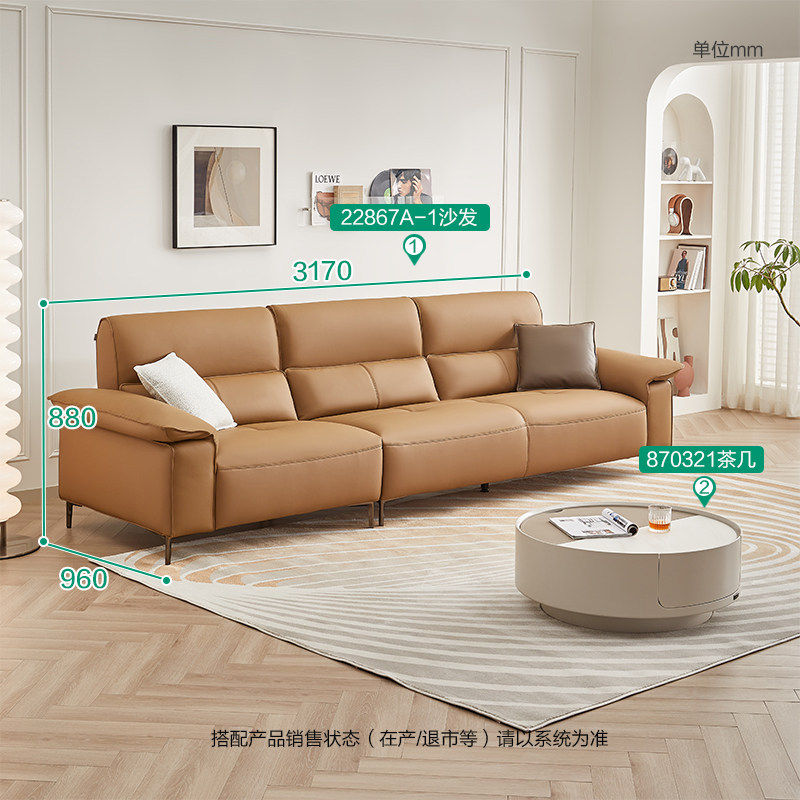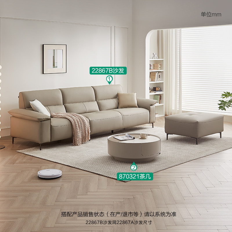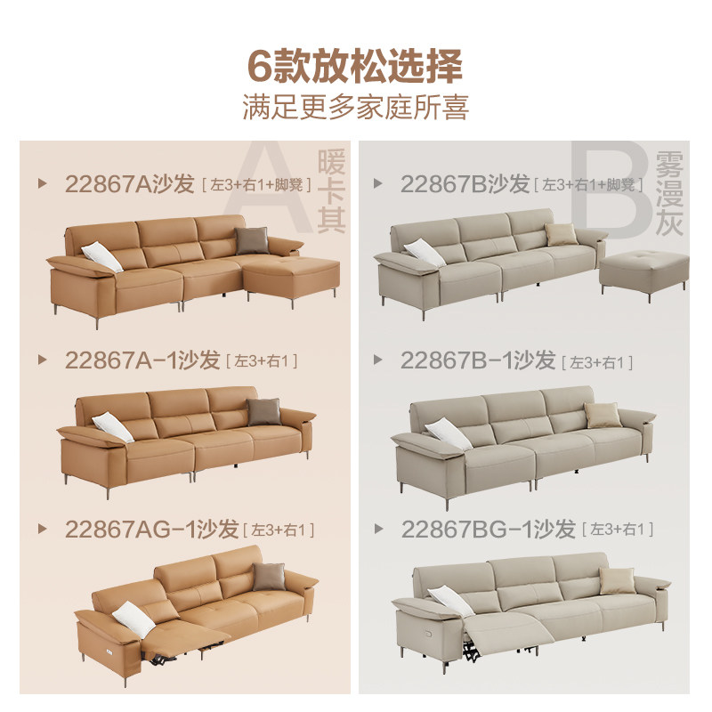 全友家居门店同款 简约 22867AB直排一字型皮艺真皮电动沙发