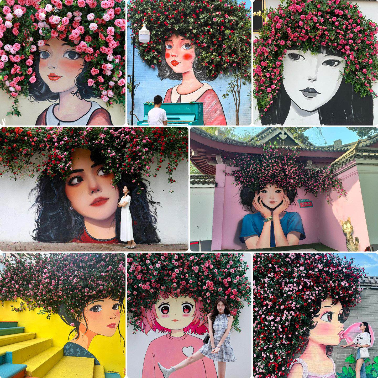 彷真玫瑰花藤蔓爬墙网红打卡花墙装饰门头造景空调管子装饰蓝色