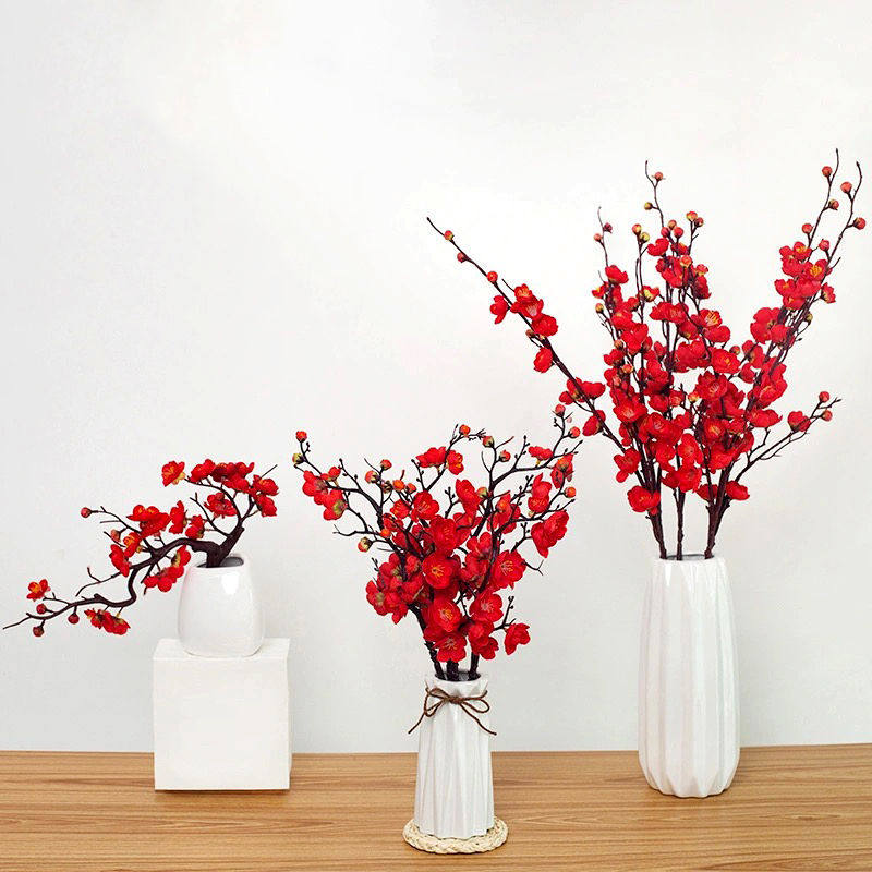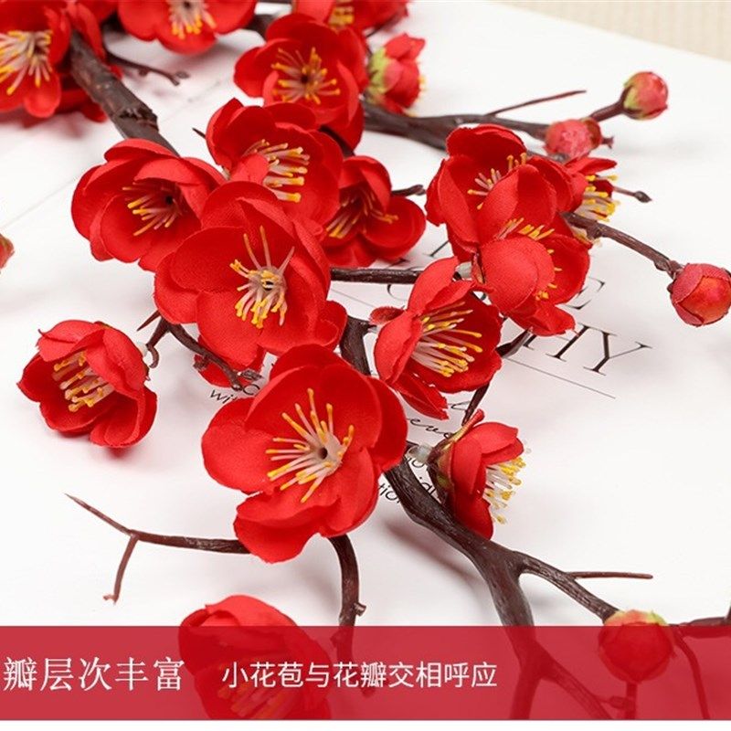 仿真梅花枝假花摆件仿真花腊梅干花桃花客厅摆设花束中式家居装饰