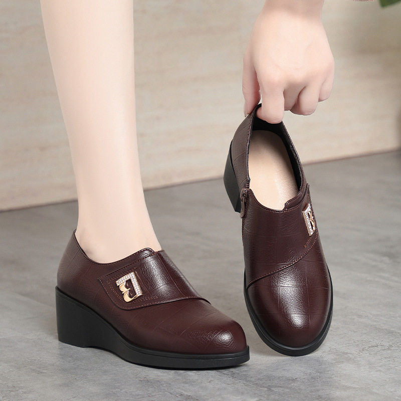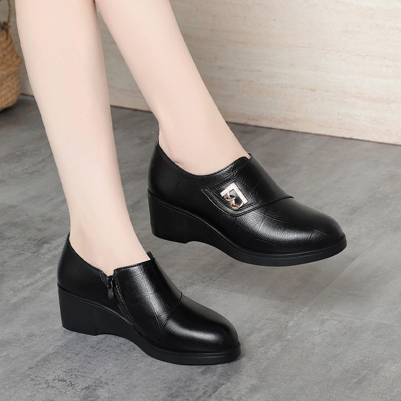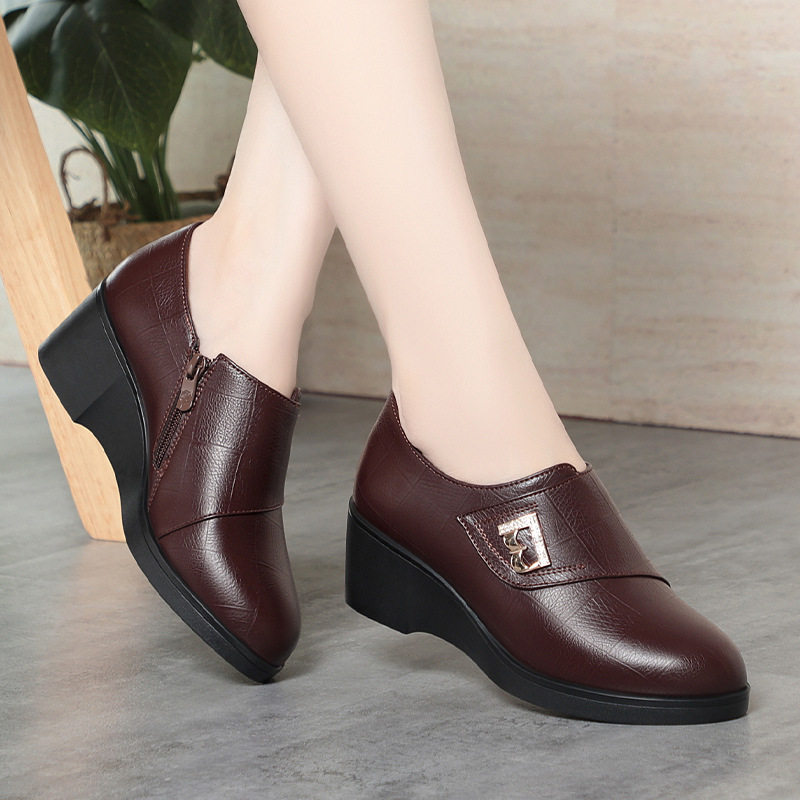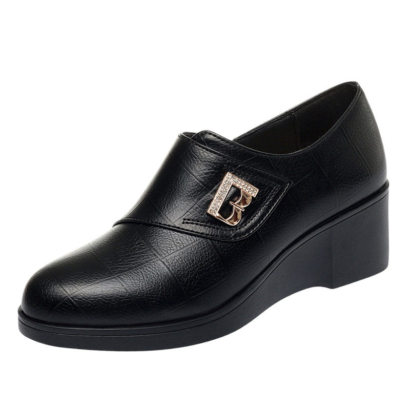 一件代发平底春秋软底单鞋女中老年女鞋坡跟鞋子女款深口女士皮鞋