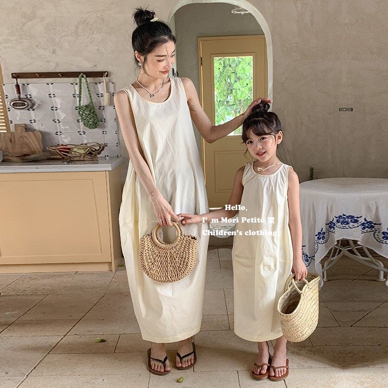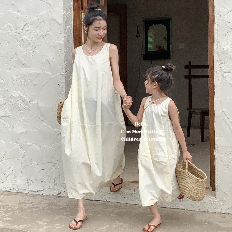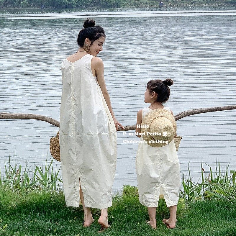 森系亲子装背心裙宽松纯棉气质花苞裙母女装女童白色连衣裙夏季