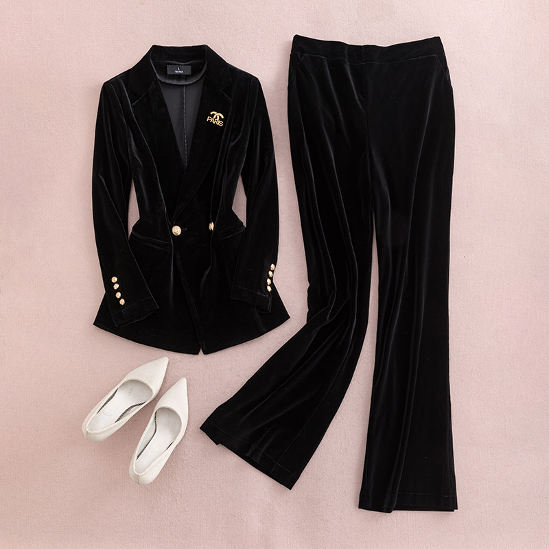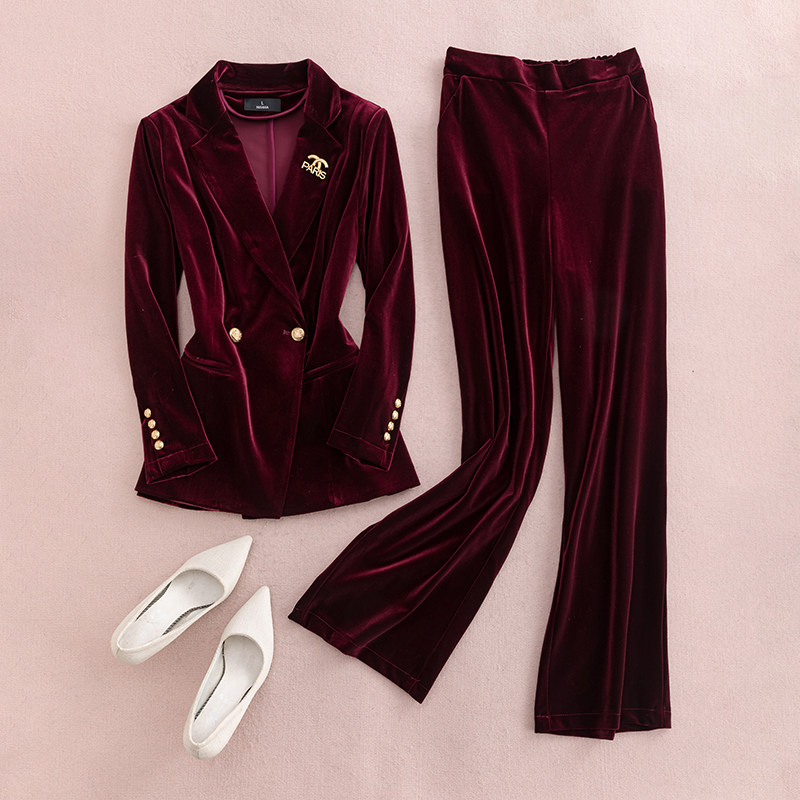 金丝绒西服套装女2025新款春秋休闲时尚职业OL收腰显瘦西装两件套