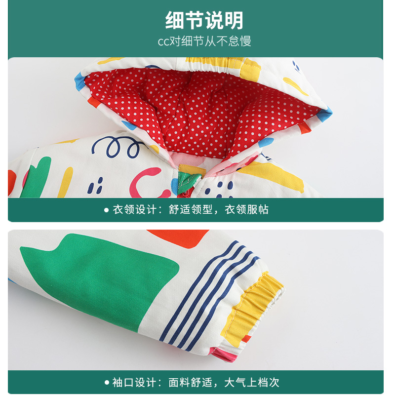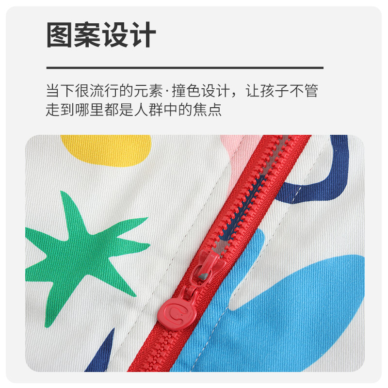 clanc潮牌童装2024秋季新款儿童撞色洋气印花棉衣外套女童棉服