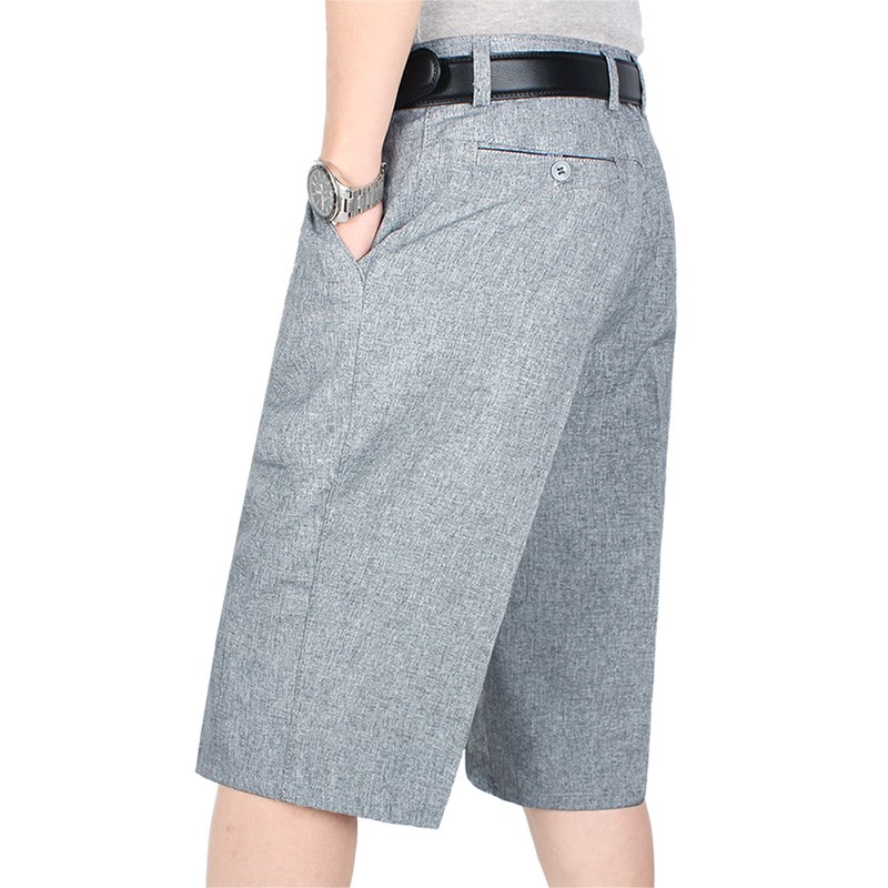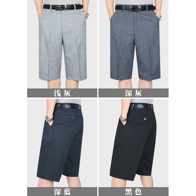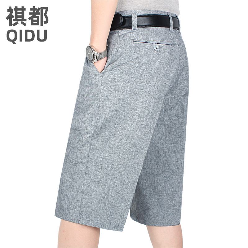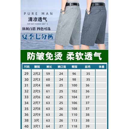 抗皱免烫薄款休闲裤中老年中裤男士透气清凉七分裤爸爸夏季短裤