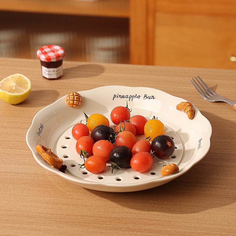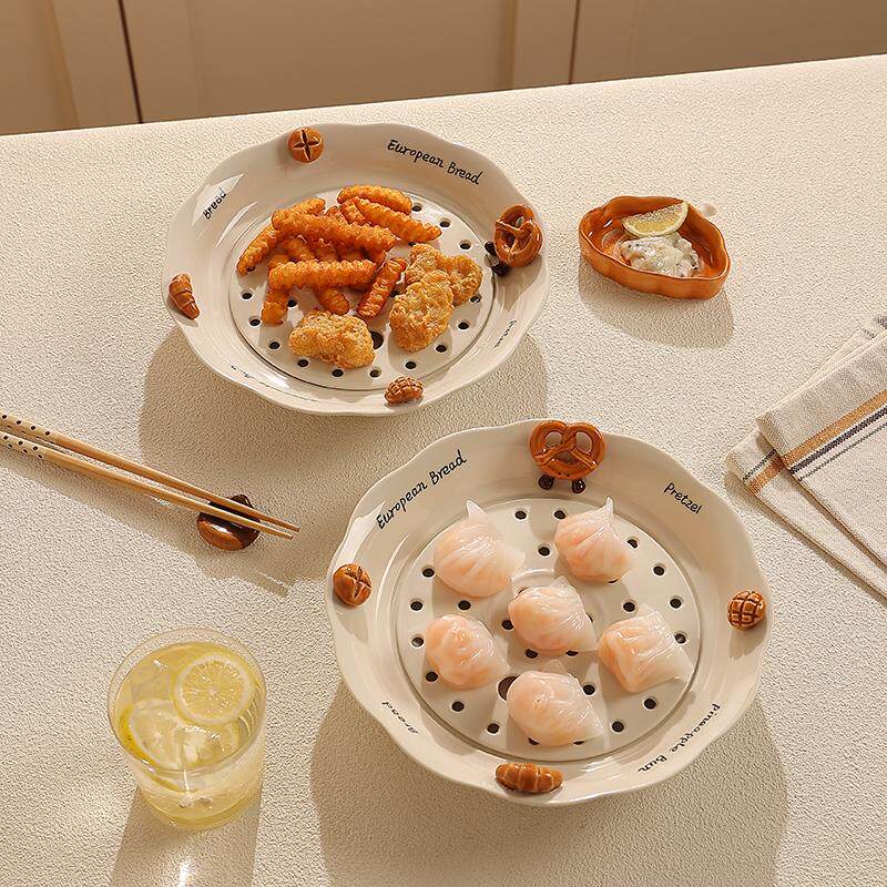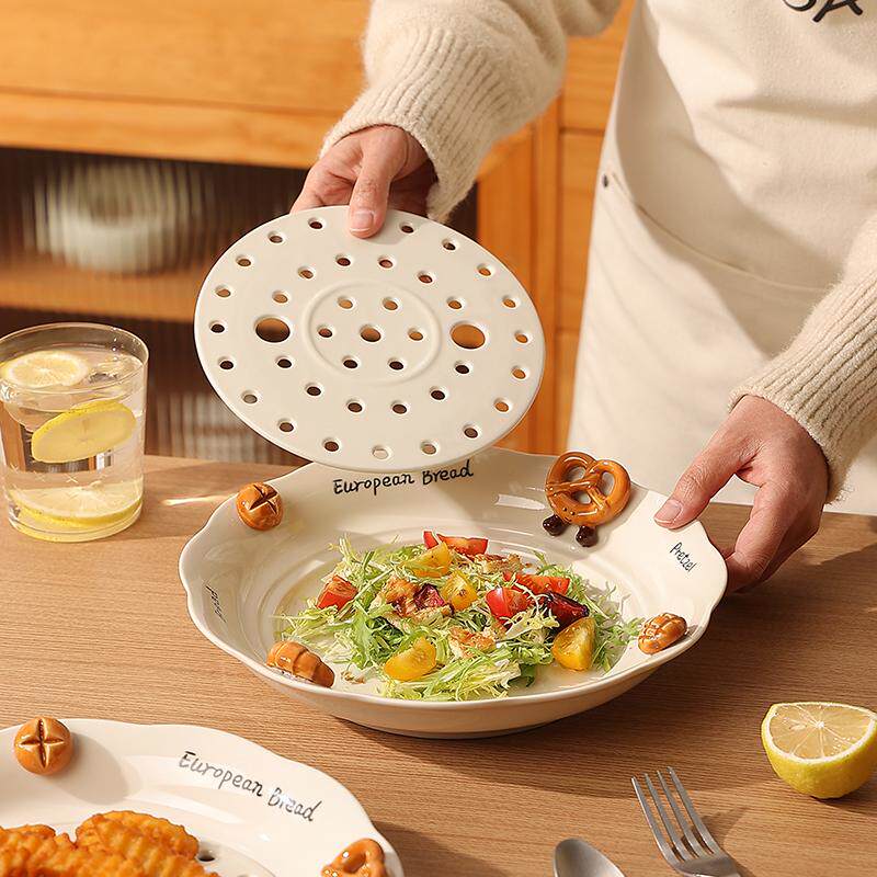 新款饺子盘沥水盘家用吃饺子盘子创意陶瓷蒸盘双层高级感水果盘子